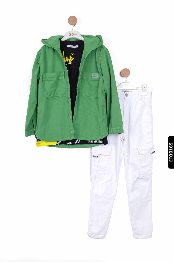 Kapüşonlu Çift Cepli Çıtçıtlı Erkek Çocuk Ceket 5-14 Yaş 24200 Yeşil - 3