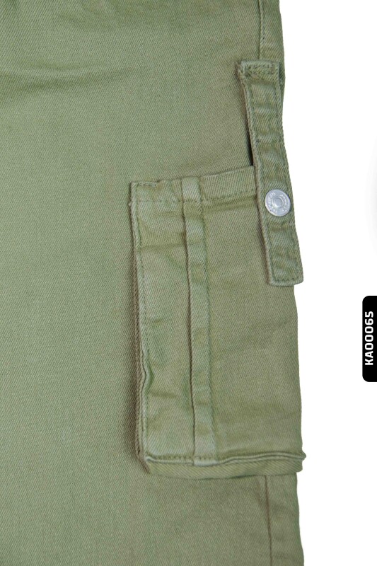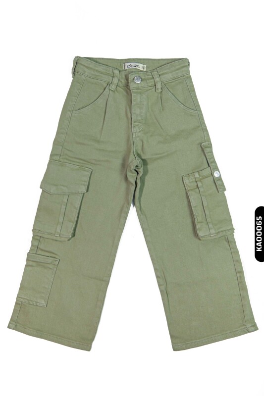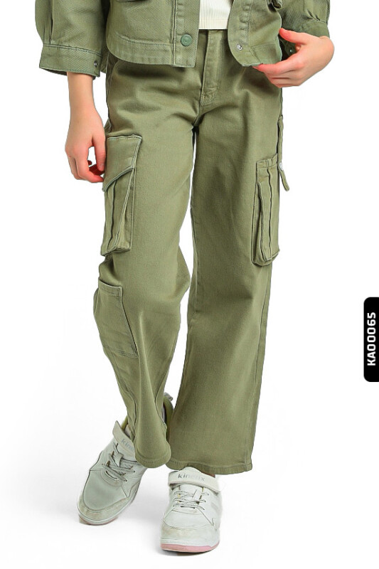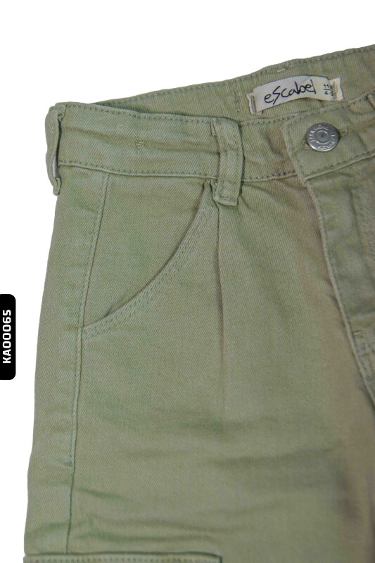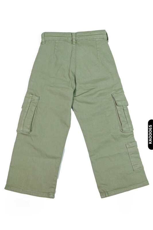 2413 بنطال بناتي بجيوب كارجو خصر عالي بأكمام مستوية للأعمار 5-14 سنة - 4