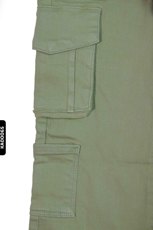 2413 بنطال بناتي بجيوب كارجو خصر عالي بأكمام مستوية للأعمار 5-14 سنة - 6