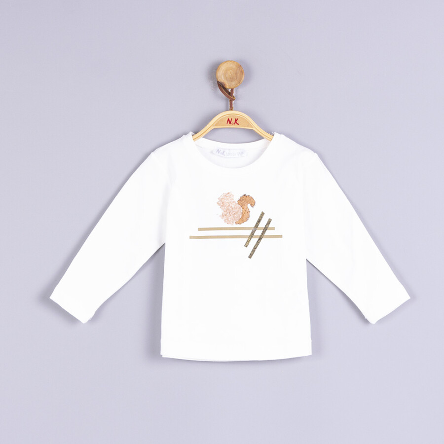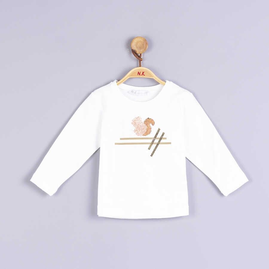 Bu kız çocuk uzun kollu bluz, rahat ve şık tasarımıyla günlük kullanıma uygundur. Sıfır yaka olan bluz, ekru rengindedir ve üzerinde sevimli bir sincap figürü ile geometrik çizgiler yer alır. Düz kesimi ve yumuşak kumaşı sayesinde çocukların hareket özgürlüğünü kısıtlamaz, kış mevsimi için idealdir.