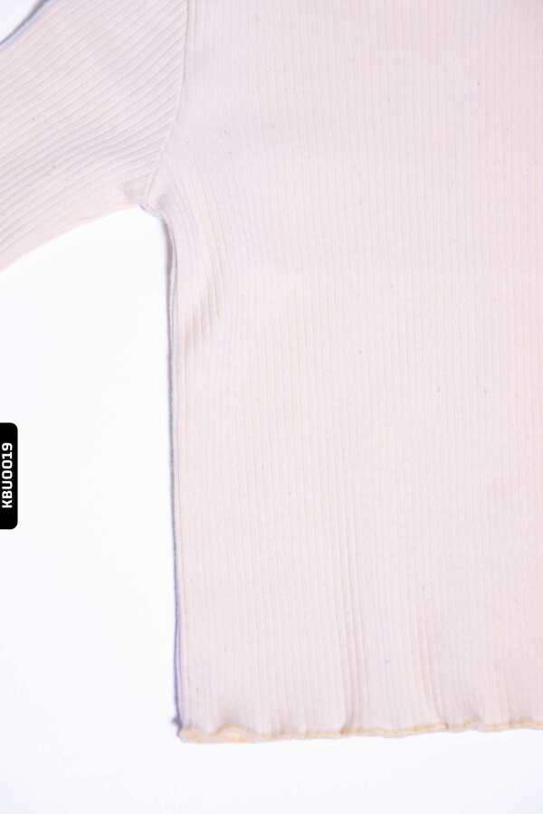 Gelince Haber VerBu kız çocuk tişörtü, kış koleksiyonunun vazgeçilmez parçalarından biridir. Krem renginde, rahat ve esnek yapısı sayesinde çocukların hareket özgürlüğünü kısıtlamaz. Uzun kollu ve hafif kabarık bisiklet yaka tasarımı ile hem sıcak tutar hem de şık bir görünüm sunar. Alt kısmı ve kol uçları dalgalı kesim detaylarıyla sade ama farklı bir tarz yaratır. Bu tişört, gündelik kullanım için ideal ve diğer parçalarla kolayca kombinlenebilir.