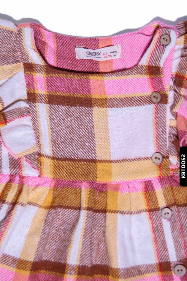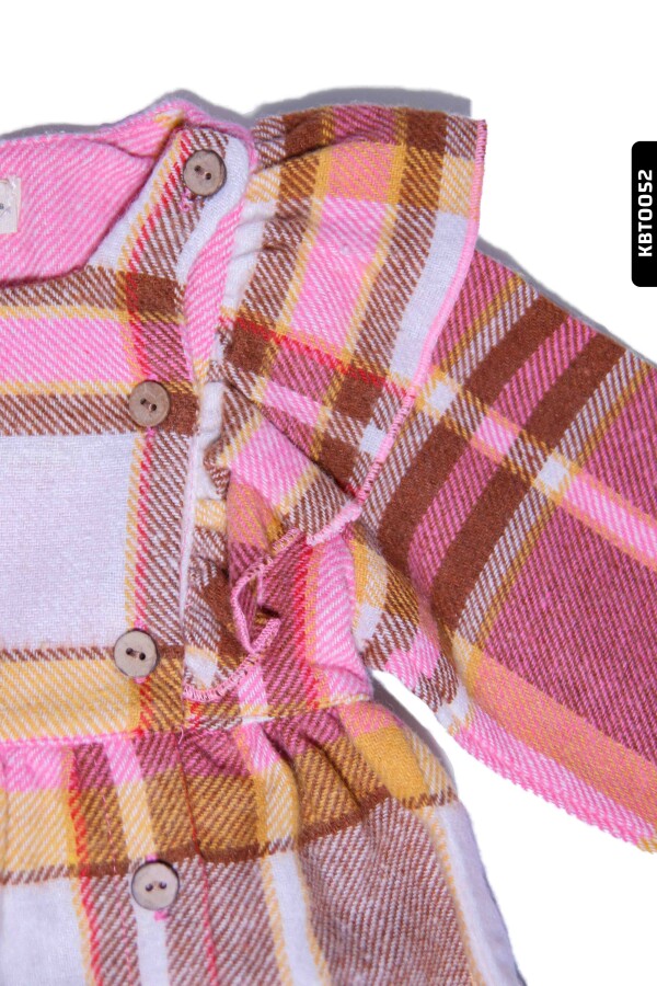 Gelince Haber VerBu kız çocuk elbisesi, kış ayları için ideal yumuşak ve sıcak tutan dokusuyla dikkat çekiyor. Pembe, kahverengi ve sarı tonlarından oluşan kareli desenleriyle şık ve sevimli bir görünüm sunar. Uzun kollu ve bisiklet yakalı tasarımı sayesinde rahat hareket imkanı sağlar. Elbisenin ön kısmında yan yana sıralanmış düğmeler, hem görsel detay hem de kolay giydirme avantajı sunar. Omuz ve bel kısmındaki fırfır detaylar elbiseye feminin ve oyuncu bir hava katmaktadır.