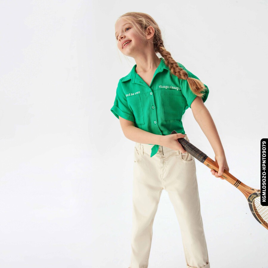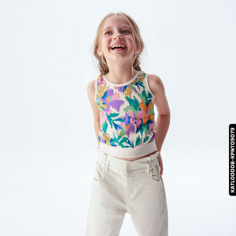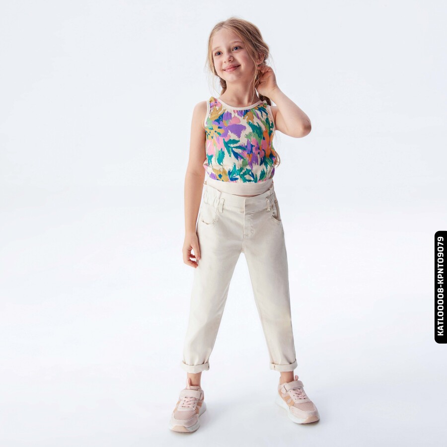 Bu krem rengi kız çocuk pantolonu, yaz ayları için ideal hafif ve rahat bir seçenektir. Düz kesimi ve klasik tasarımıyla günlük kullanım için uygundur. Pantolon, fermuarlı ve düğmeli kapama sistemine sahiptir. Yan ve arka cepleri, hem estetik hem de pratik kullanım sunar. Kumaşı yumuşak ve esnektir, böylece çocukların hareket kabiliyetini kısıtlamaz. Modern ve sade görünümüyle her türlü üst giyim parçasıyla kolayca kombinlenebilir.