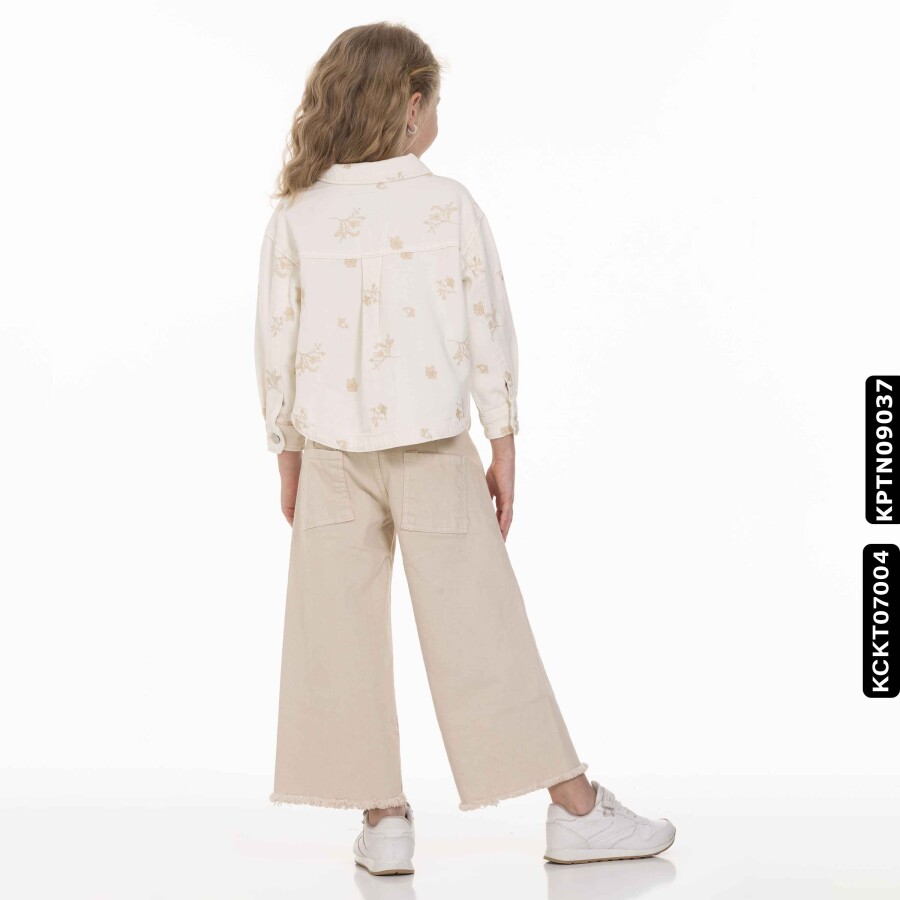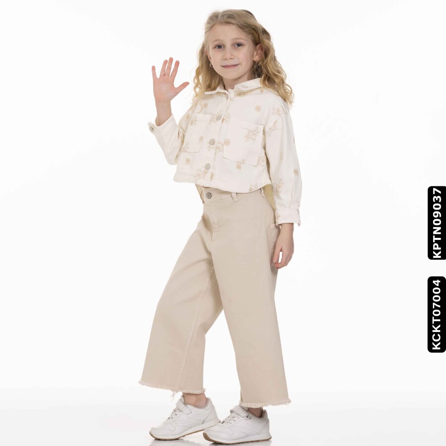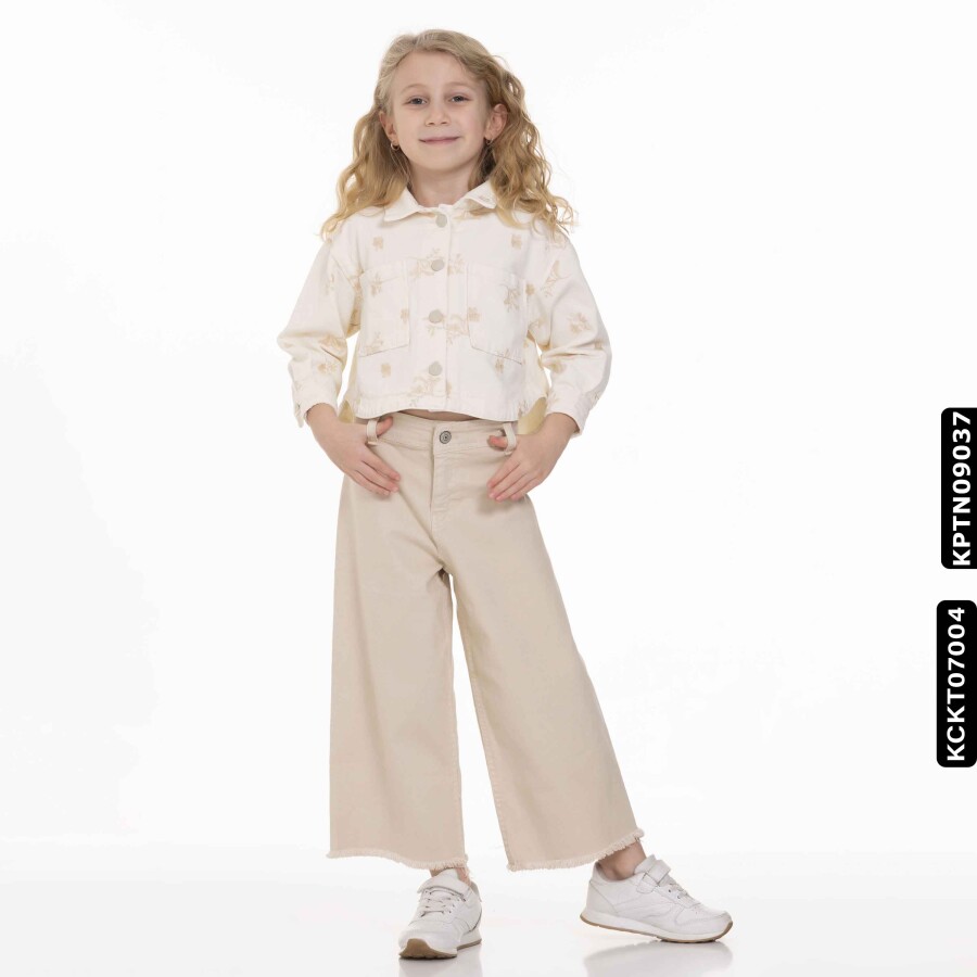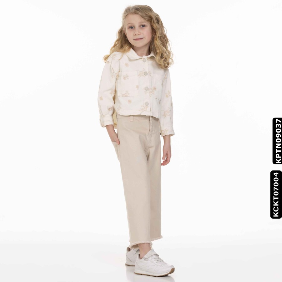 Bu kız çocuk ceketi, yaz aylarına uygun hafif yapısıyla şıklık ve rahatlığı bir arada sunuyor. Kapüşonsuz ve önden düğmeli tasarımı ile kullanımı kolaydır. Krem rengi üzerine yeşil tonlarında çiçek desenleriyle süslenmiş olan ceket, kısa boyu ve uzun kollu yapısı ile hareket özgürlüğü sağlar. Yanlarda cepler bulunur, böylece küçük eşyalar kolayca taşınabilir. Spor ve günlük kombinlere uyum sağlayan bu ceket, 9-14 yaş arası çocuklar için idealdir.