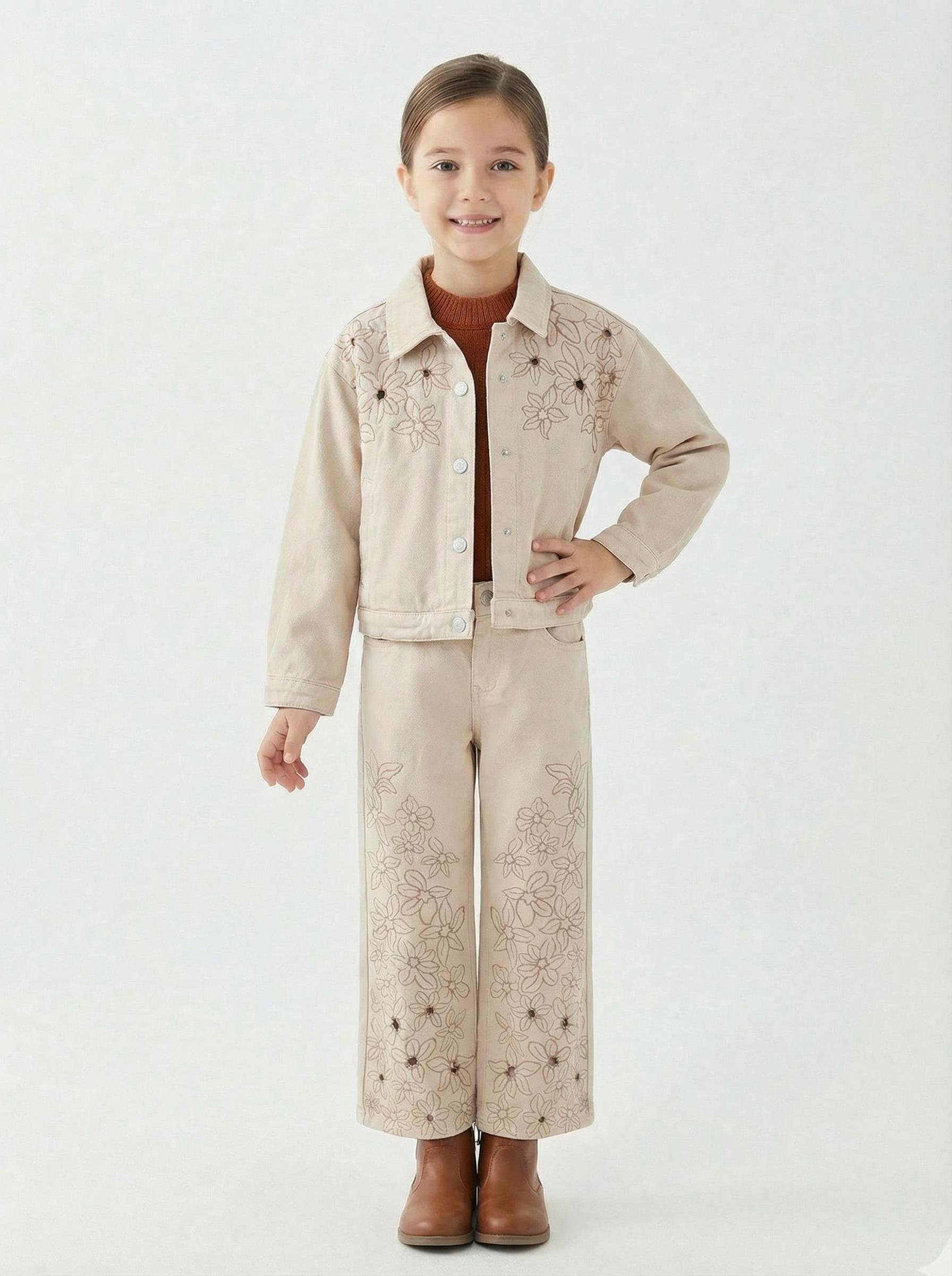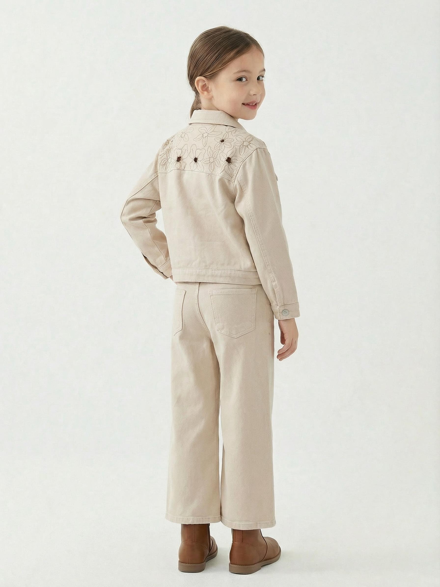Kız Çocuk 2'li (Ceket + Pantolon) Alt Üst Takım 5-14 Yaş 2676 Krem