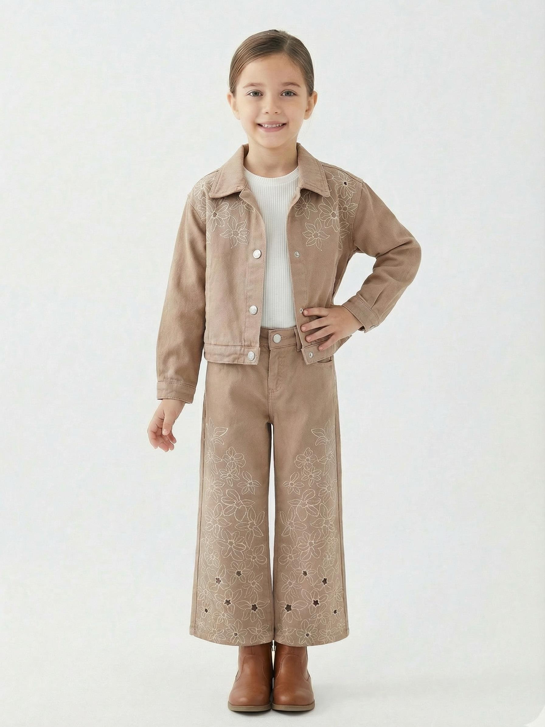 Kız Çocuk 2'li (Ceket + Pantolon) Alt Üst Takım 5-14 Yaş 2676 Krem