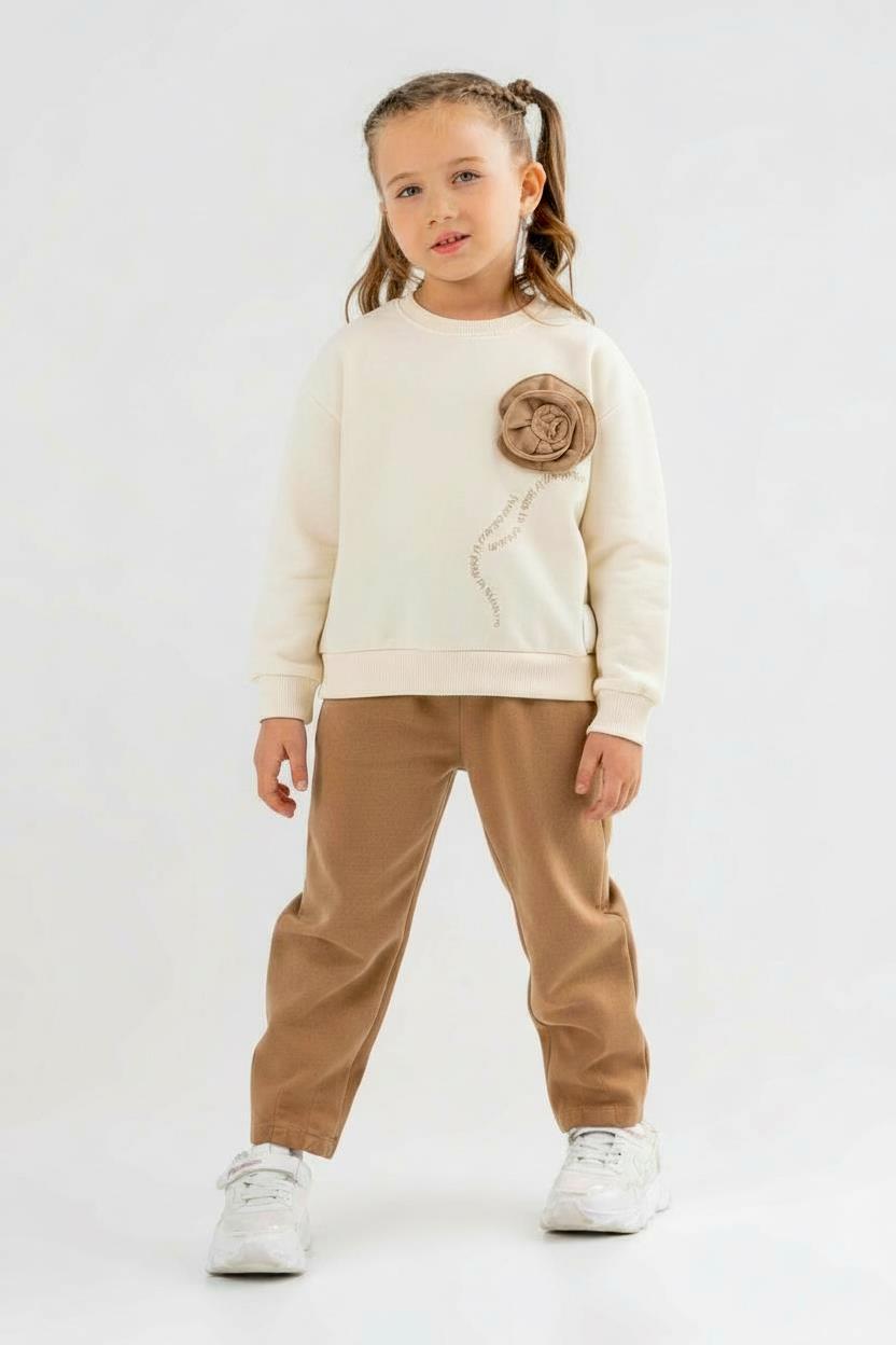 Kız Çocuk 2'li Kombin Takmı 4-8 Yaş SET0408 Pudra