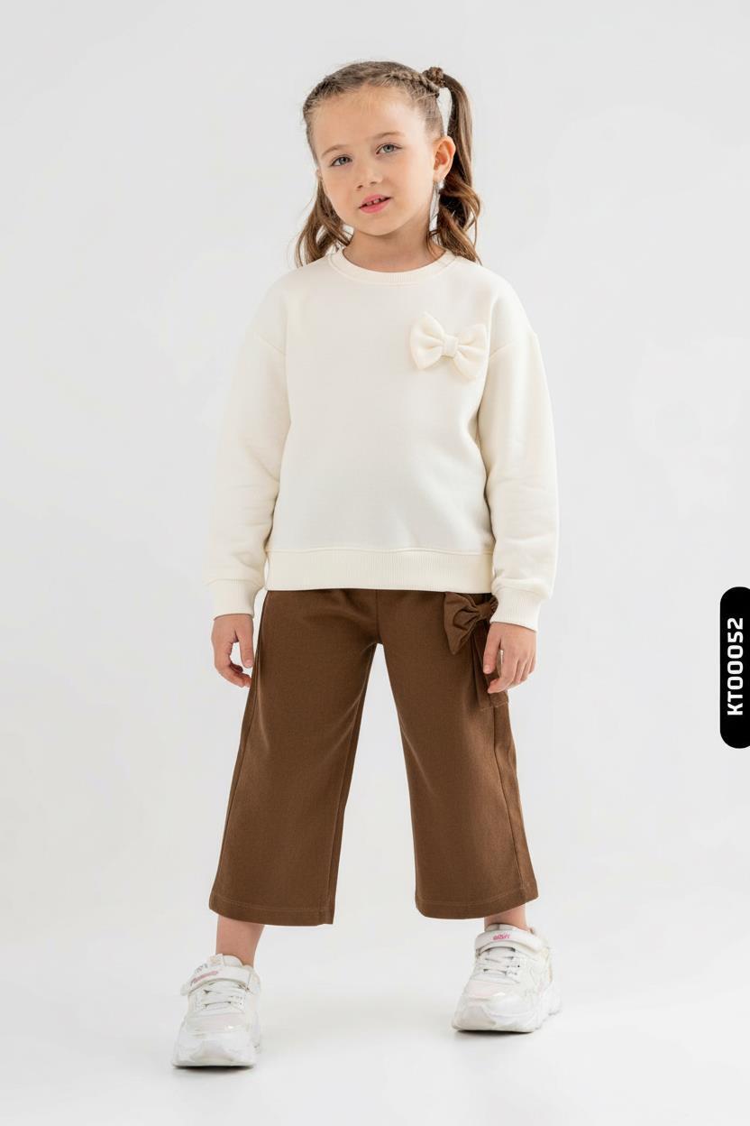 Kız Çocuk 2'li Kombin Takmı 4-8 Yaş SET0418 Kahverengi