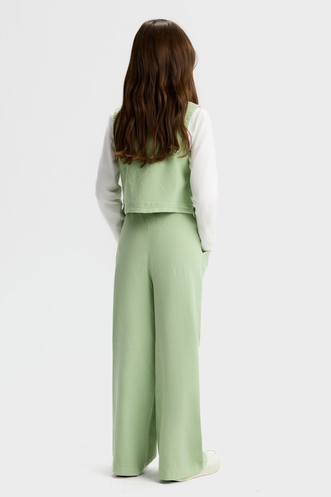 Bu kız çocuk kombin takımı, günlük kullanım için uygun, rahat ve şık bir seçenektir. Takımda uzun kollu, kapüşonlu üst ve eşofman tarzında alt bulunur. Üst parça fermuarlı kapama ve iki yan cepli detaylara sahiptir. Kapüşon ve bel kısmında ayarlanabilir kordonlar mevcuttur. Kumaş dokusu yumuşak ve hafif tüylü, spor ve rahat bir görünüm sunar. Alt parça standart paça kesimindedir ve elastik bel bantlıdır.