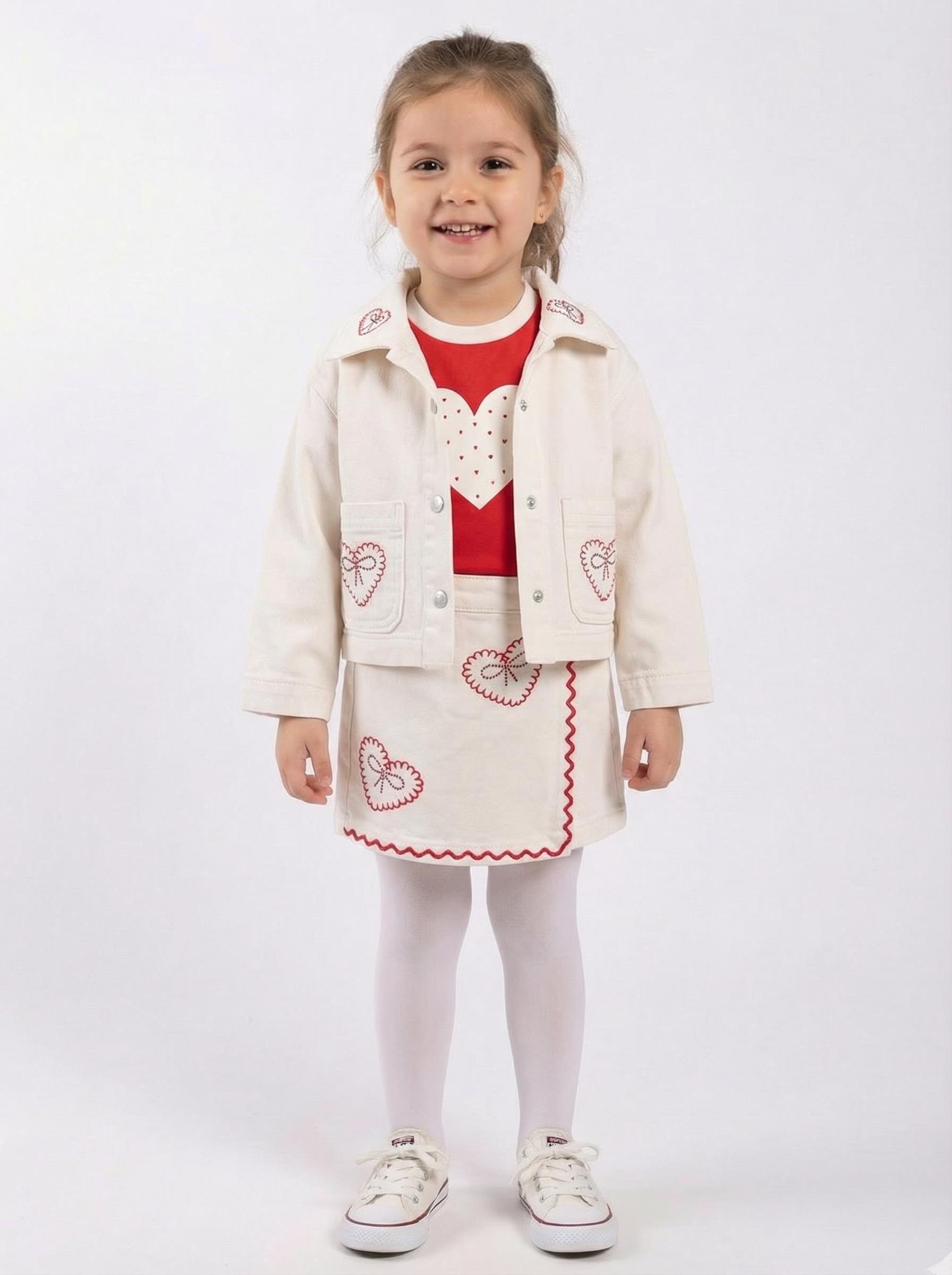 Kız Çocuk 3'lü Alt Üst Kombin Takmı 1-4 Yaş SET0482 Krem
