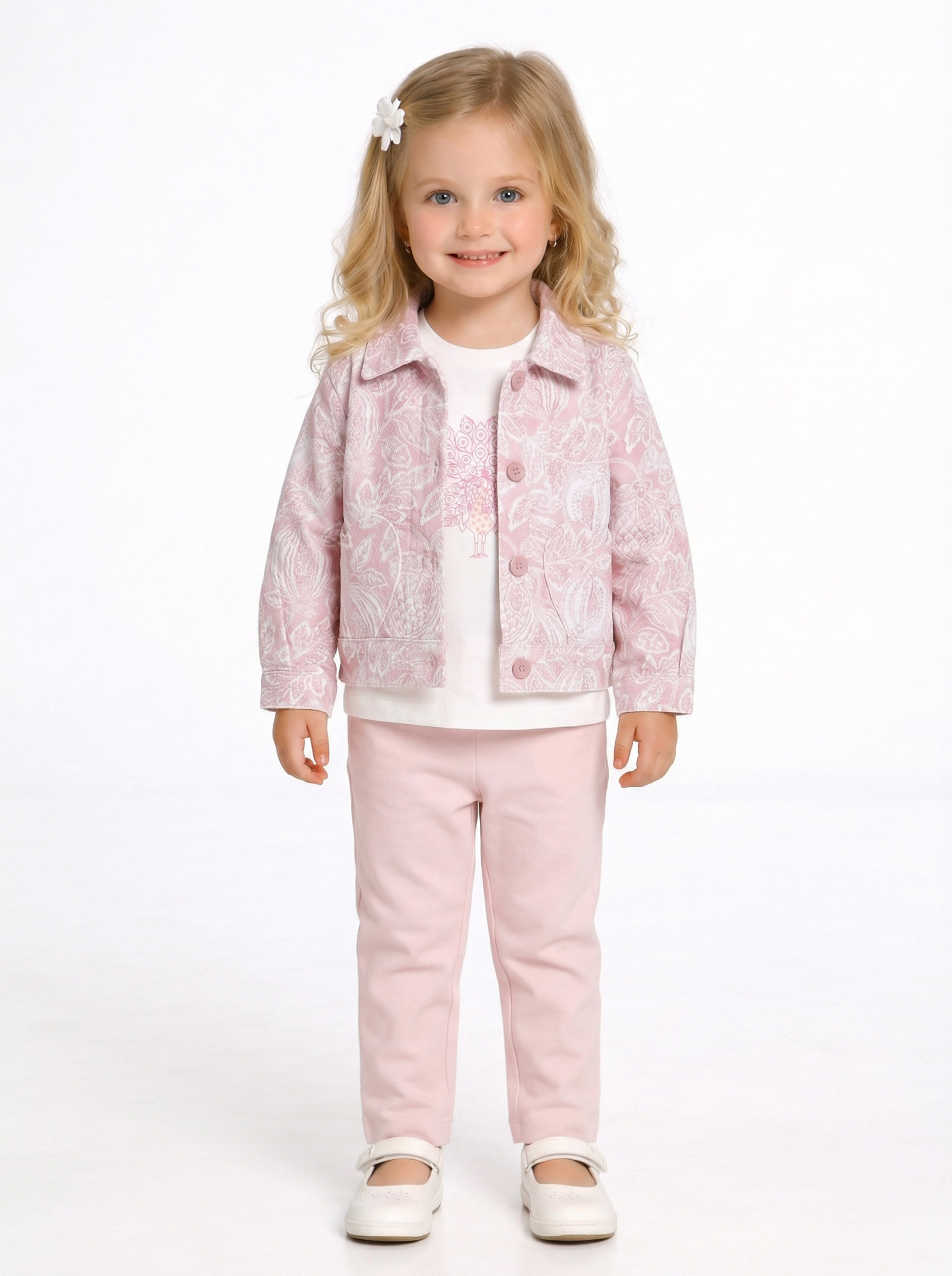 Kız Çocuk 3'lü Alt Üst Kombin Takmı 1-4 Yaş SET0518 Pudra