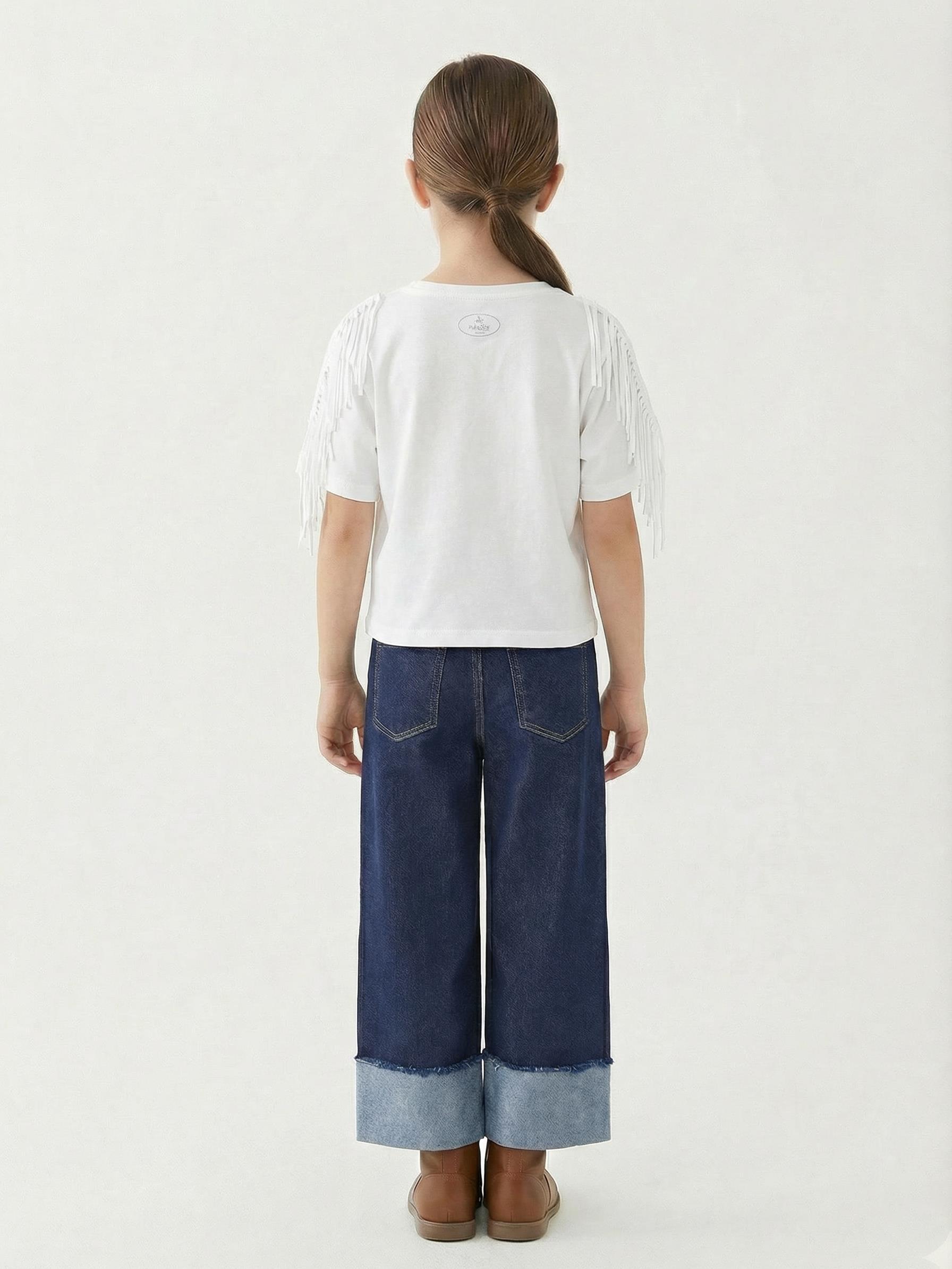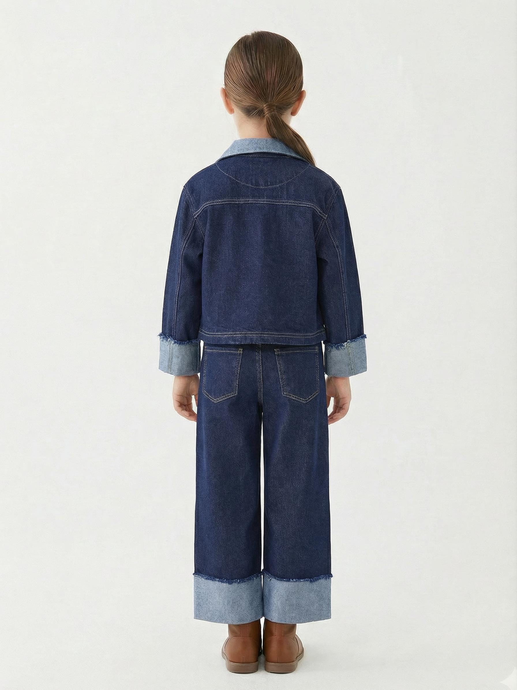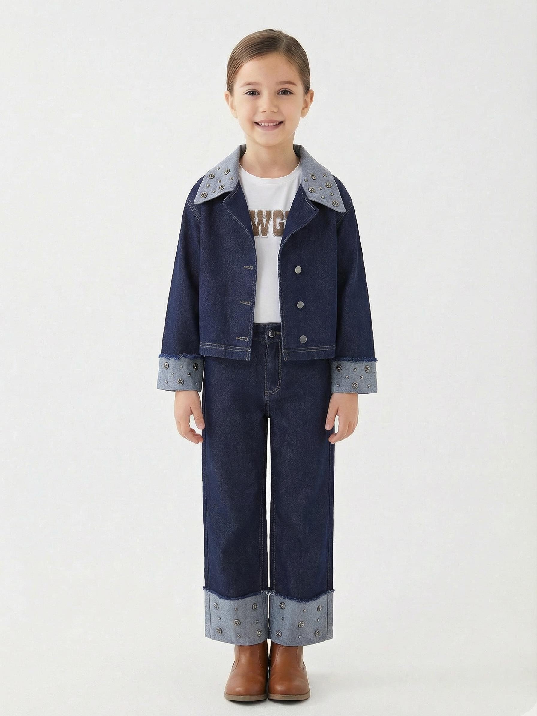 Kız Çocuk 3'lü Jean Alt Üst Kombin Takmı 5-13 Yaş SET0474 Mavi