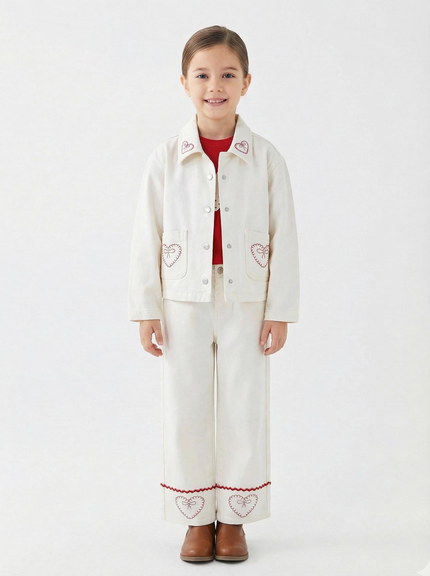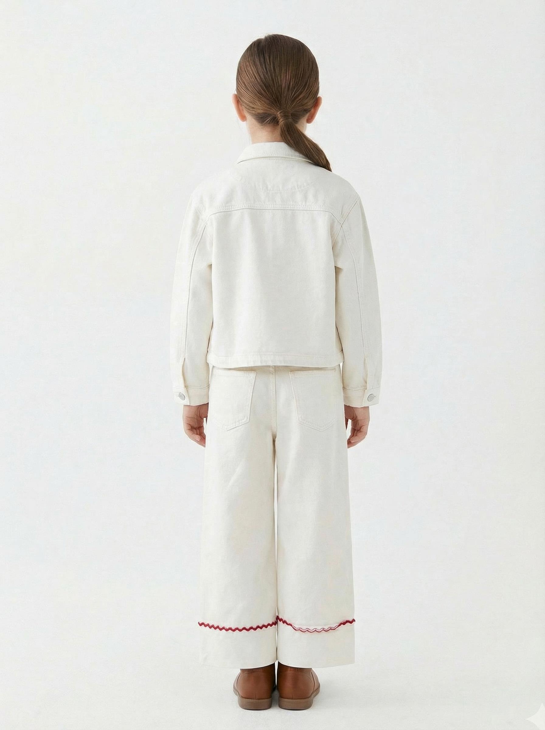 Kız Çocuk 3'lü Alt Üst Kombin Takmı 4-13 Yaş SET0479 Krem