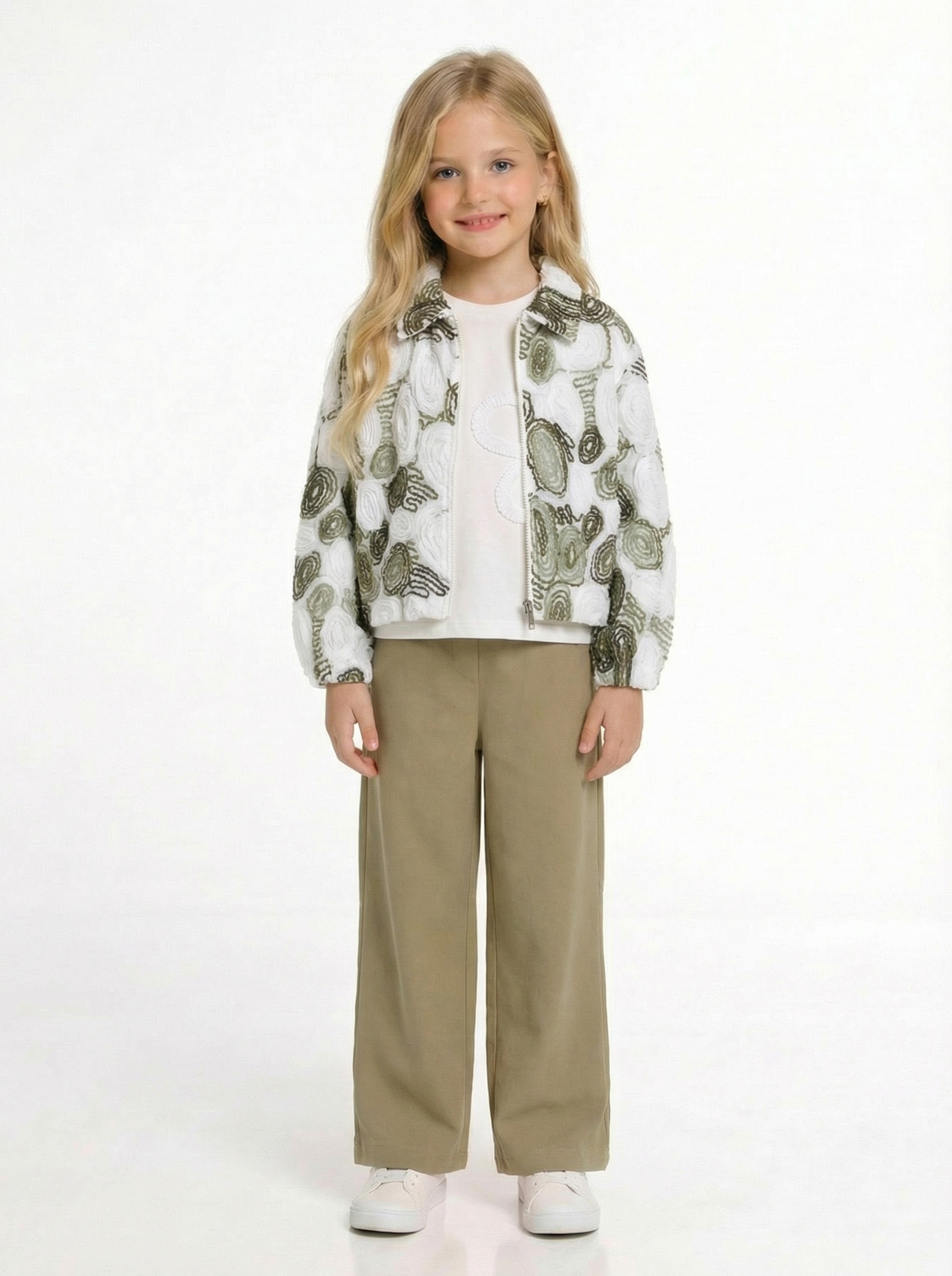 Bu kız çocuk kombin takımı, rahat ve şık bir günlük kullanım için uygundur. Takım, uzun kollu ve kapüşonlu üst ile alt parçadan oluşmaktadır. Üstte fermuarlı kapanış ve yan cepler bulunur. Kumaşı yumuşak ve hafif tüylü, sıcak tutan bir yapıya sahiptir. Alt kısmı normal kesim ve beli lastiklidir. Renk olarak açık pembe tonlarında, sade ve modern bir tasarıma sahiptir.