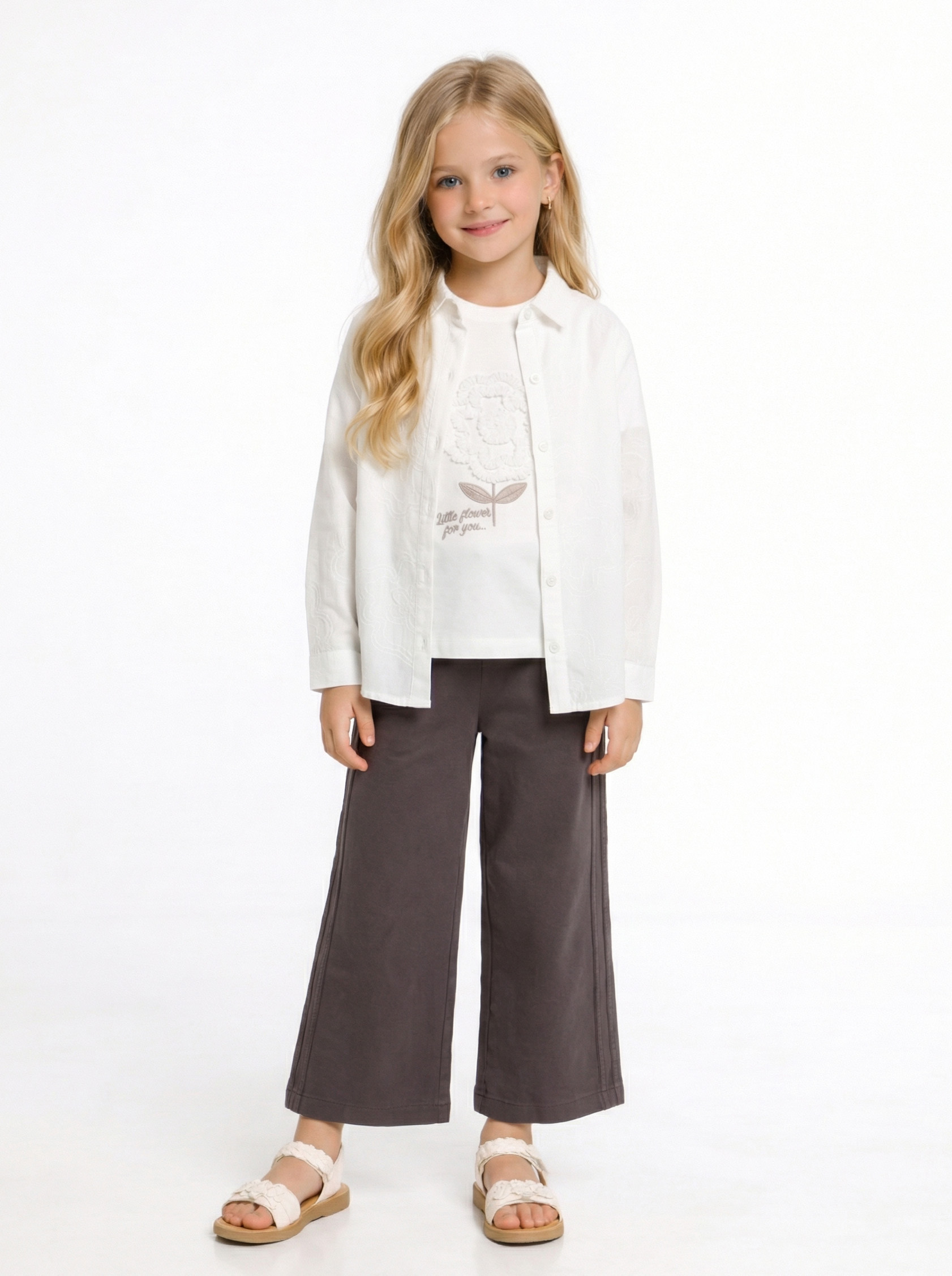 Kız Çocuk 3'lü Alt Üst Kombin Takmı 4-8 Yaş SET0516 Kahverengi