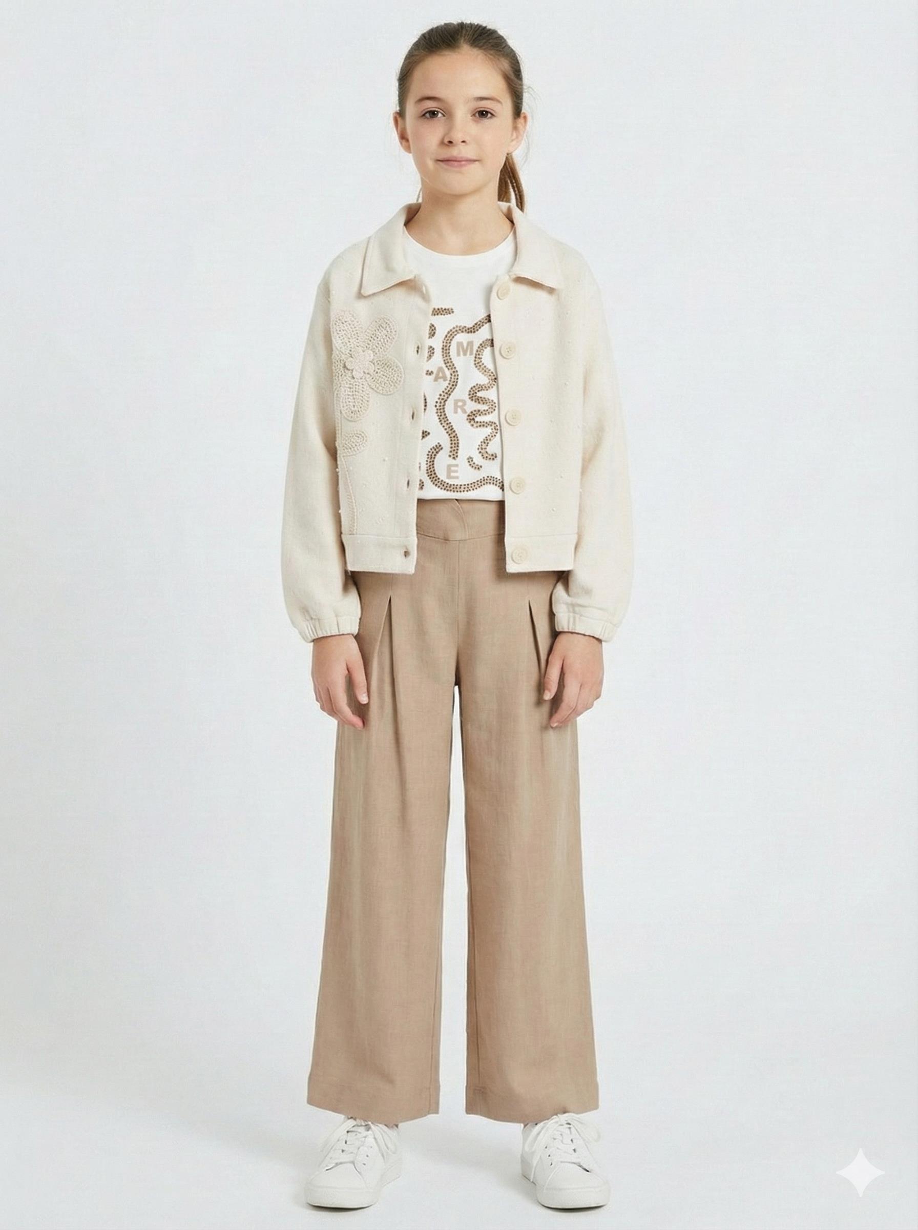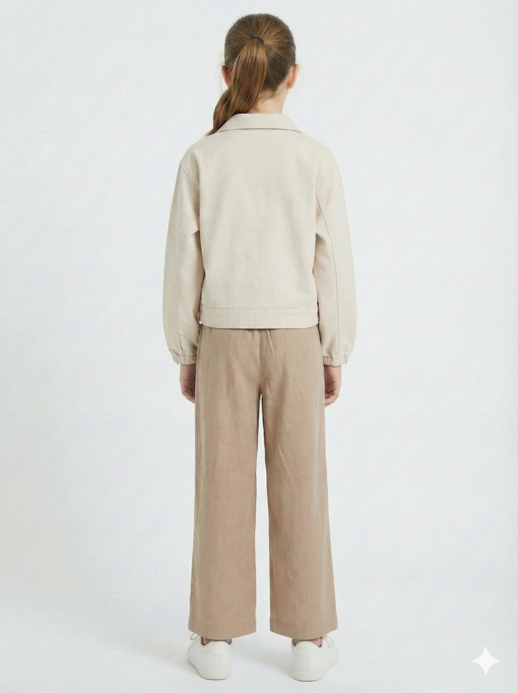 Bu kız çocuk kombin takımı, günlük kullanım için rahat ve şık bir seçenektir. Takım, uzun kollu kapüşonlu üst ve eşofman altından oluşur. Üstte ön fermuar vardır ve iki yan cepli tasarlanmıştır. Kumaşı yumuşak ve pamuksu dokudadır. Kapüşon ve kordonlu detaylar sportif bir hava katar. Alt parça ise elastik bel ve paça manşetlerine sahiptir, hareket özgürlüğü sağlar.