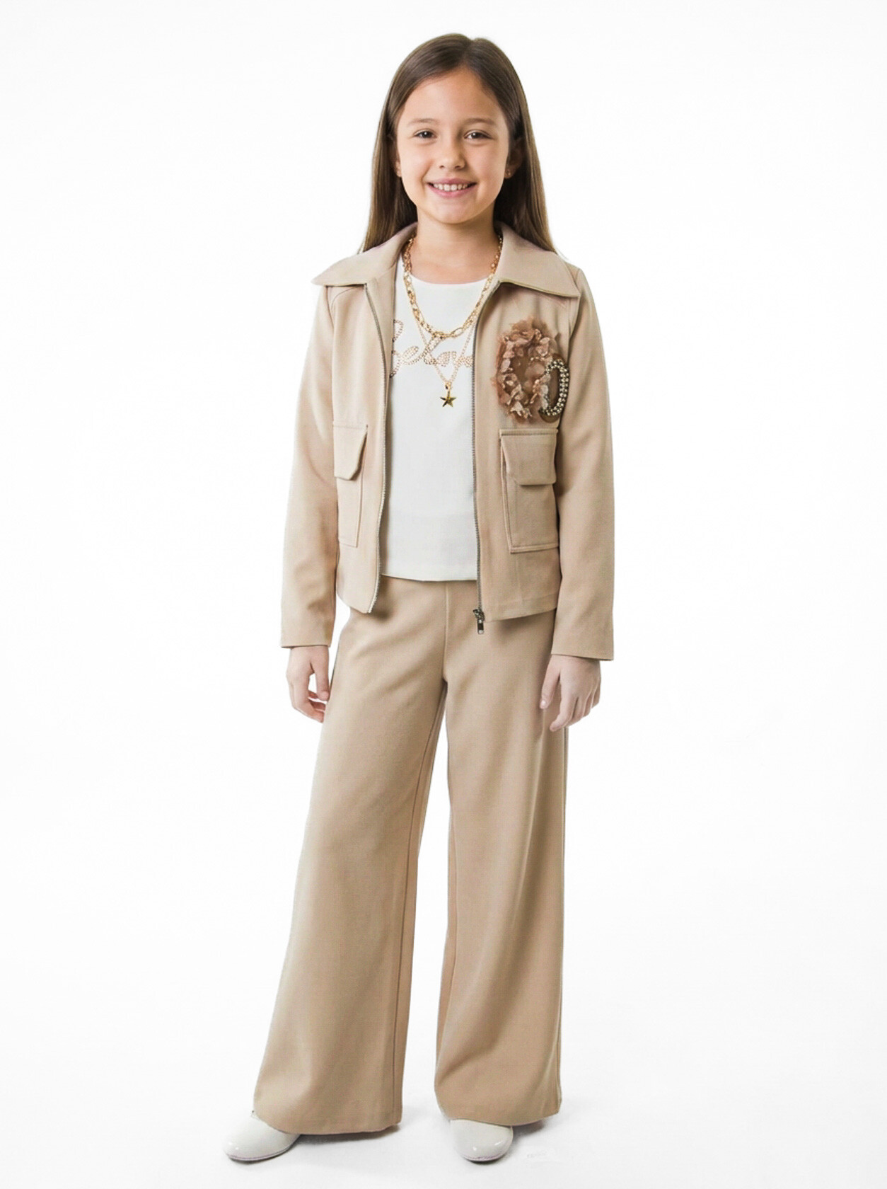 Kız Çocuk 3'lu Alt Üst Takım 6-14 Yaş 801 Bej