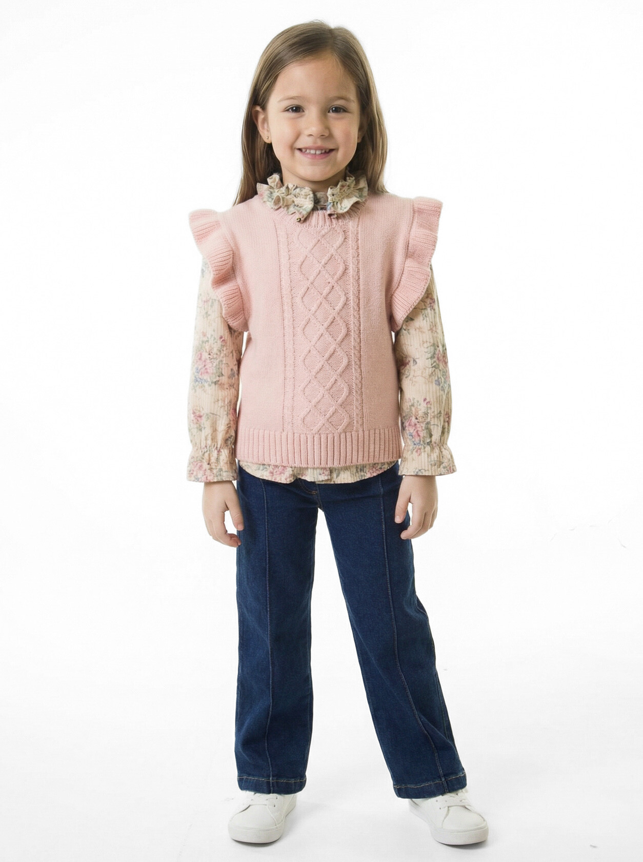 Kız Çocuk Folarlı 3'lu Alt Üst Takım 7-14 Yaş 3953-4953 Ekru
