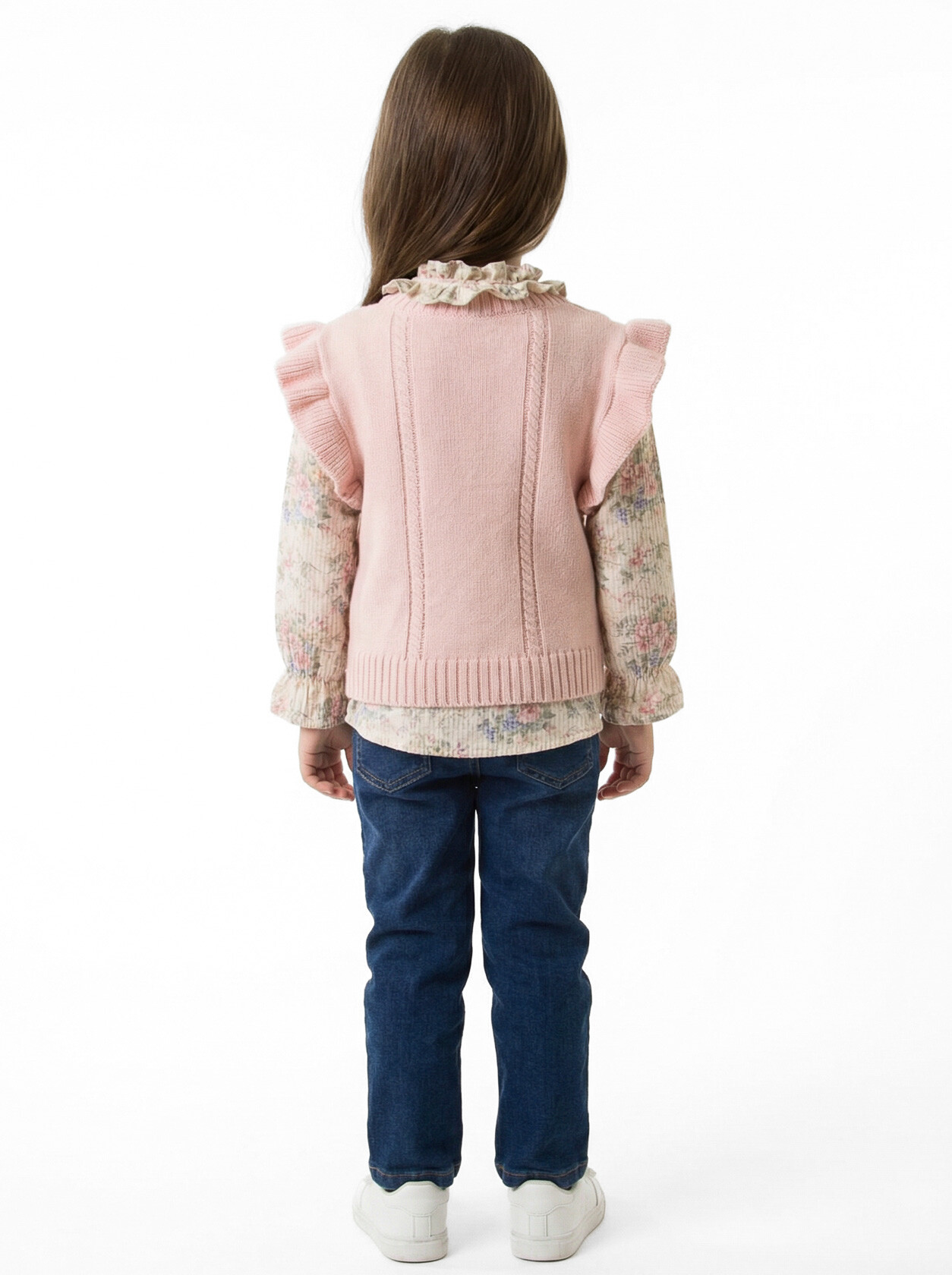 Kız Çocuk Folarlı 3'lu Alt Üst Takım 7-14 Yaş 3953-4953 Kahverengi