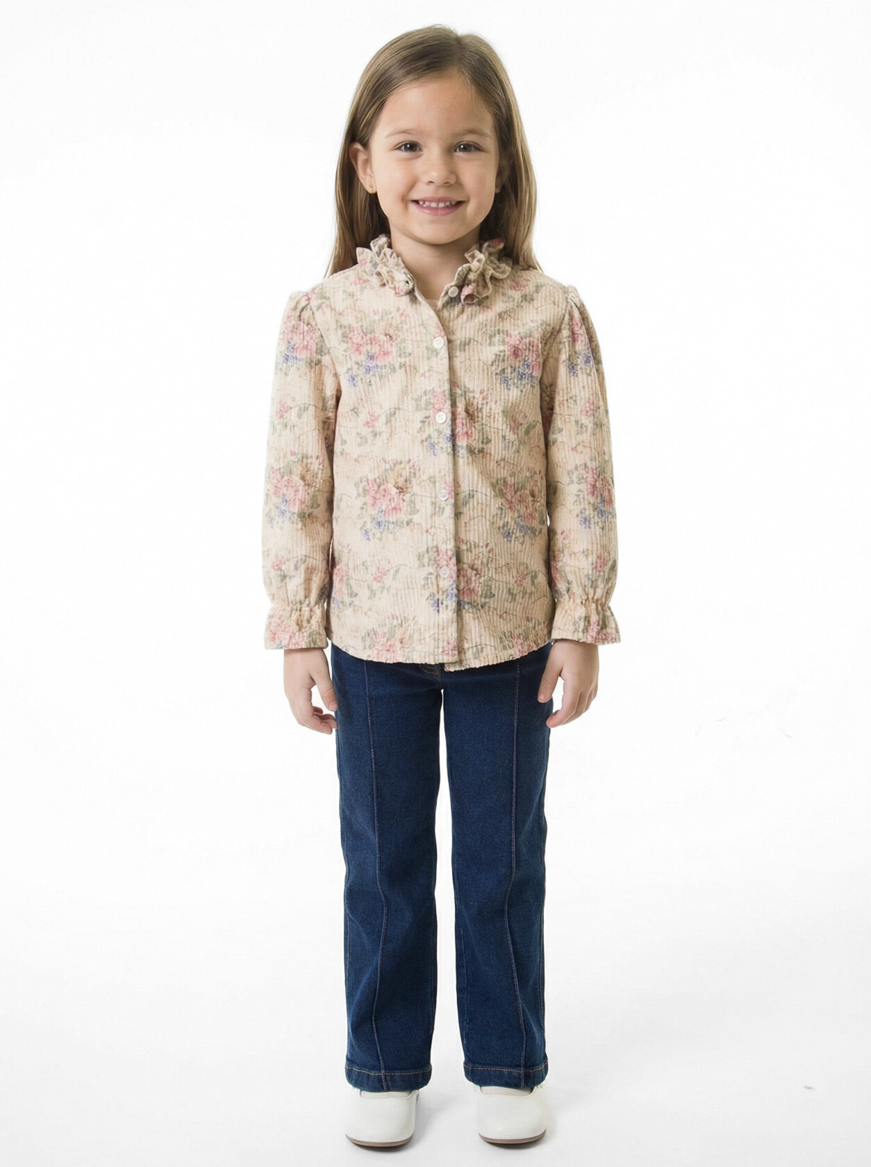 Kız Çocuk Folarlı 3'lu Alt Üst Takım 7-14 Yaş 3907-4907 Ekru