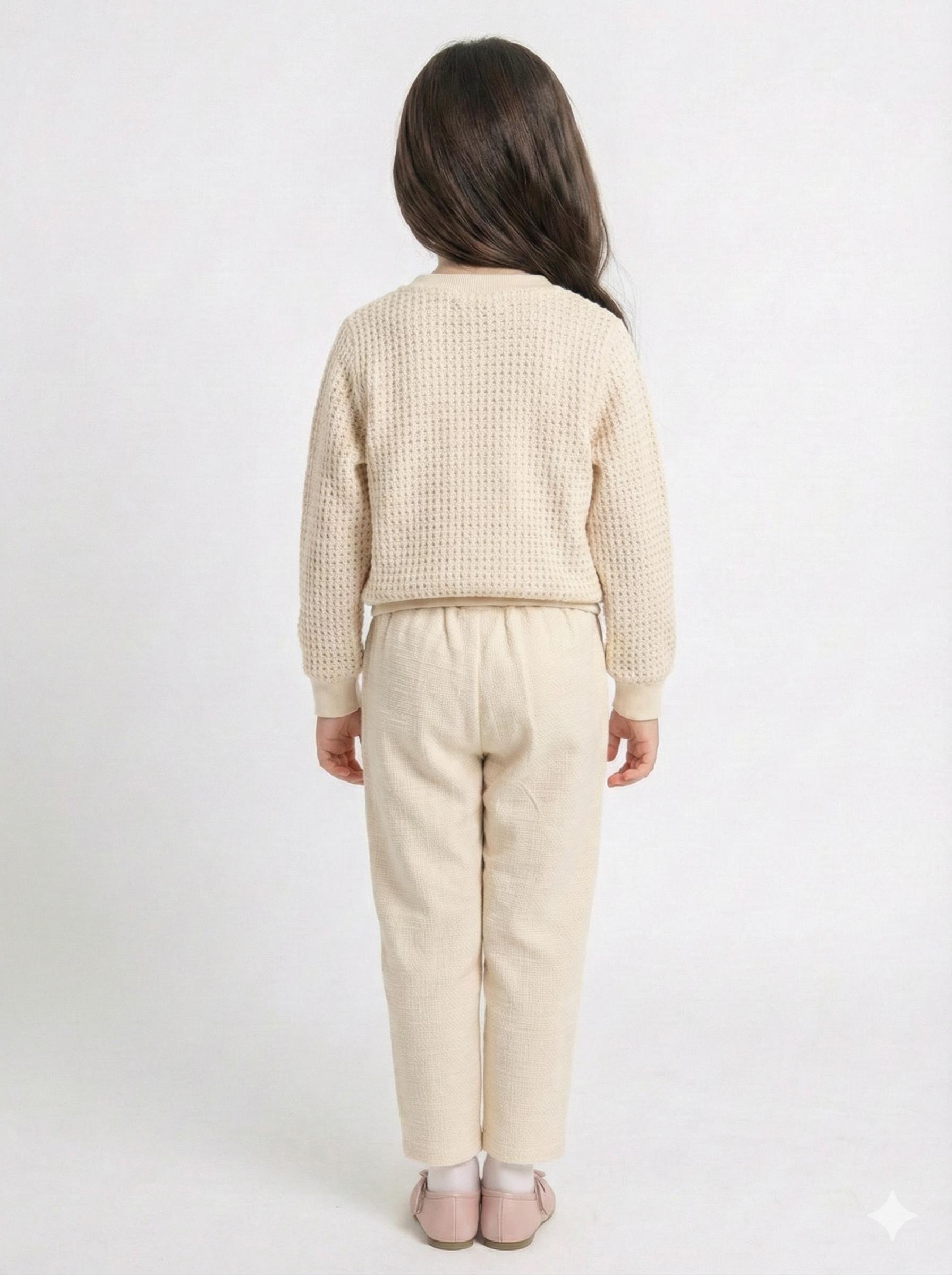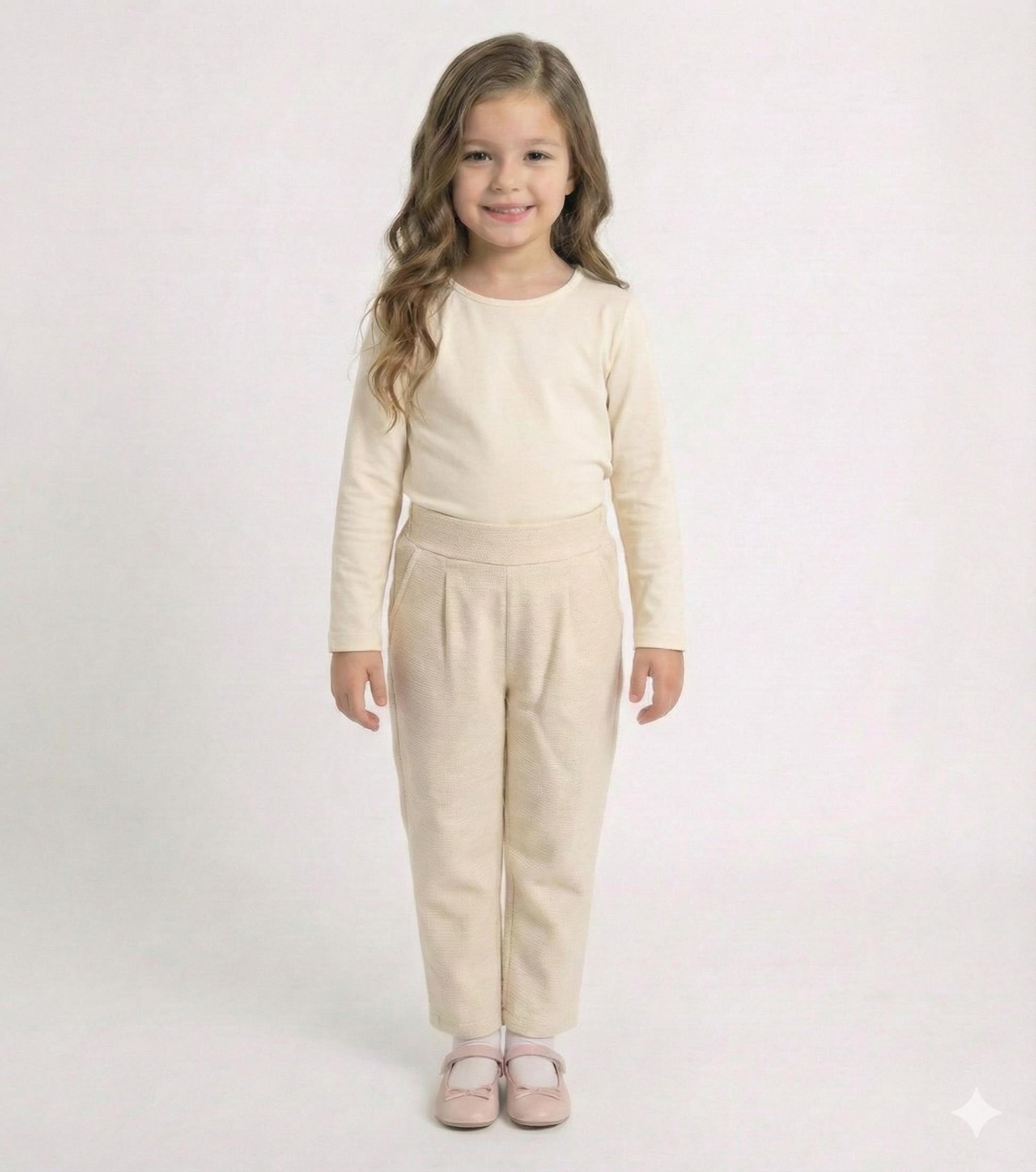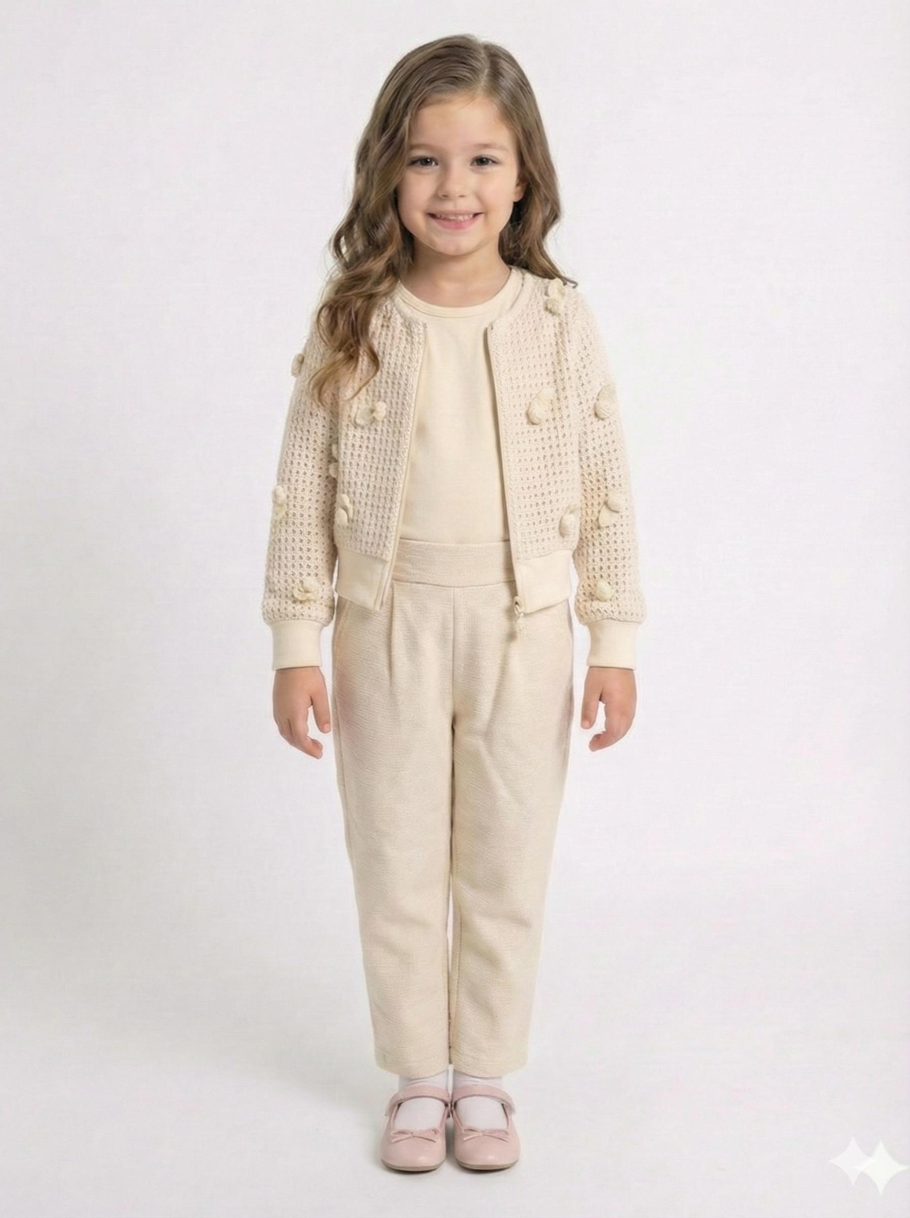 Kız Çocuk 2'li (Ceket + Pantolon) Alt Üst Takım 5-14 Yaş 2676 Krem