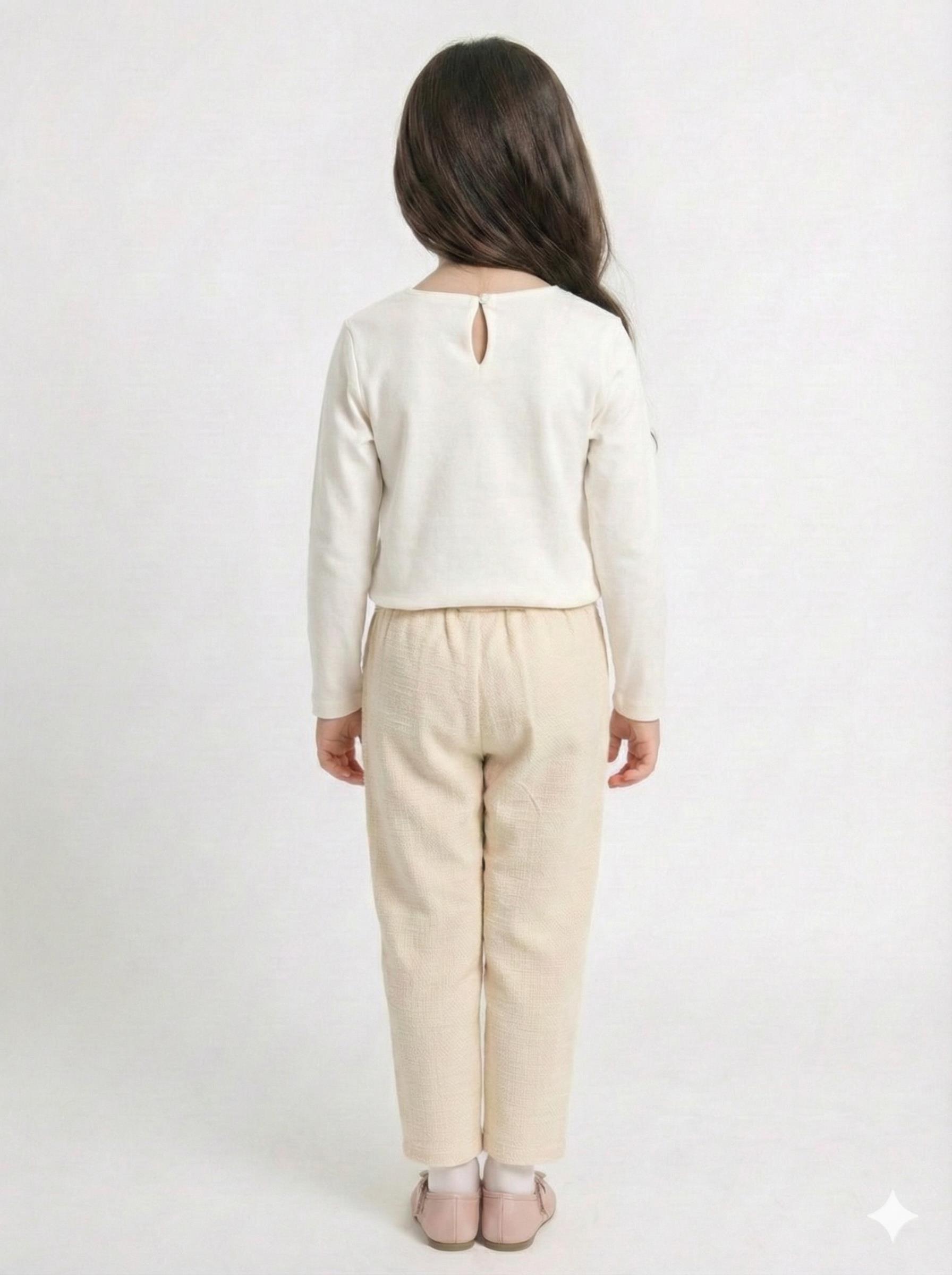 Kız Çocuk 3'lü Alt Üst Takım 4-7 Yaş 52127 Bej - 4