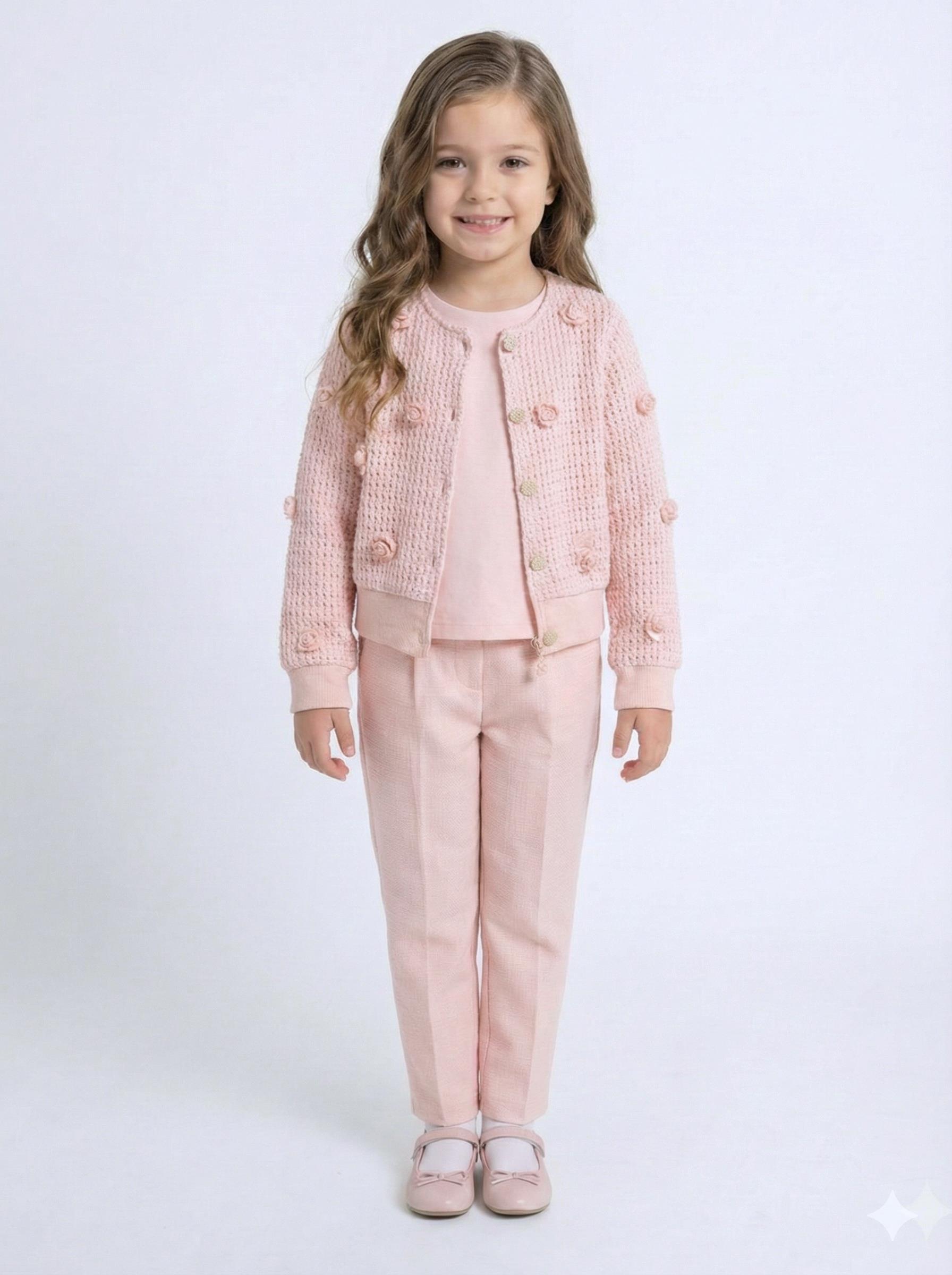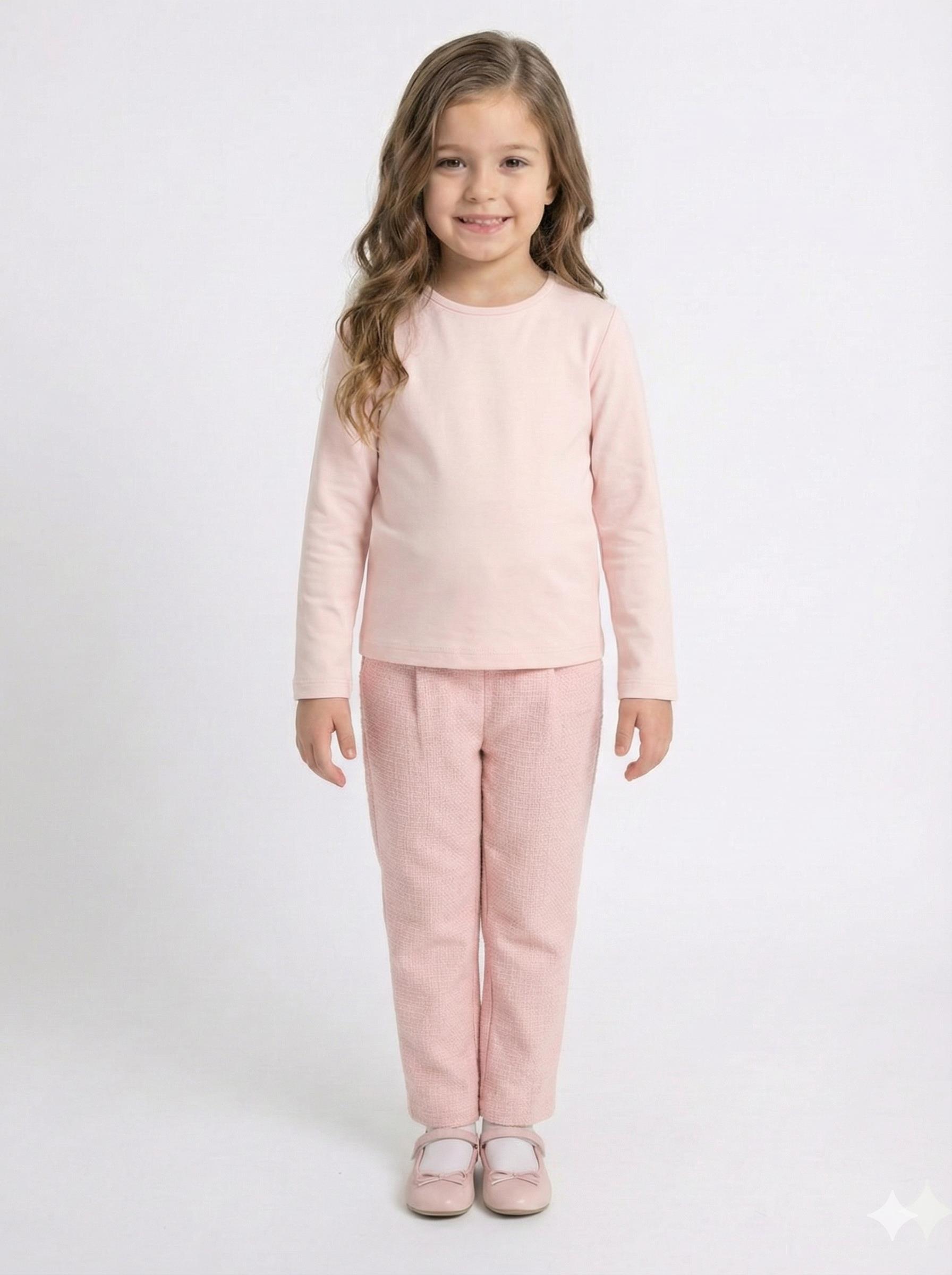 Kız Çocuk 3'lü Alt Üst Takım 4-7 Yaş 52127 Pudra - 1