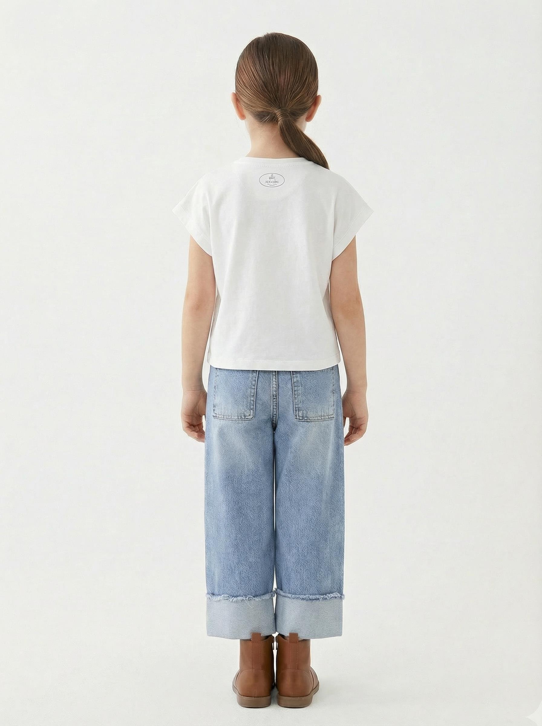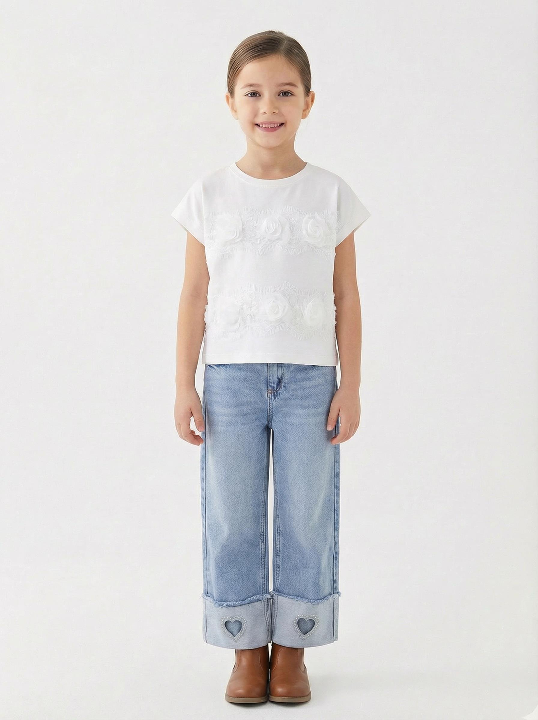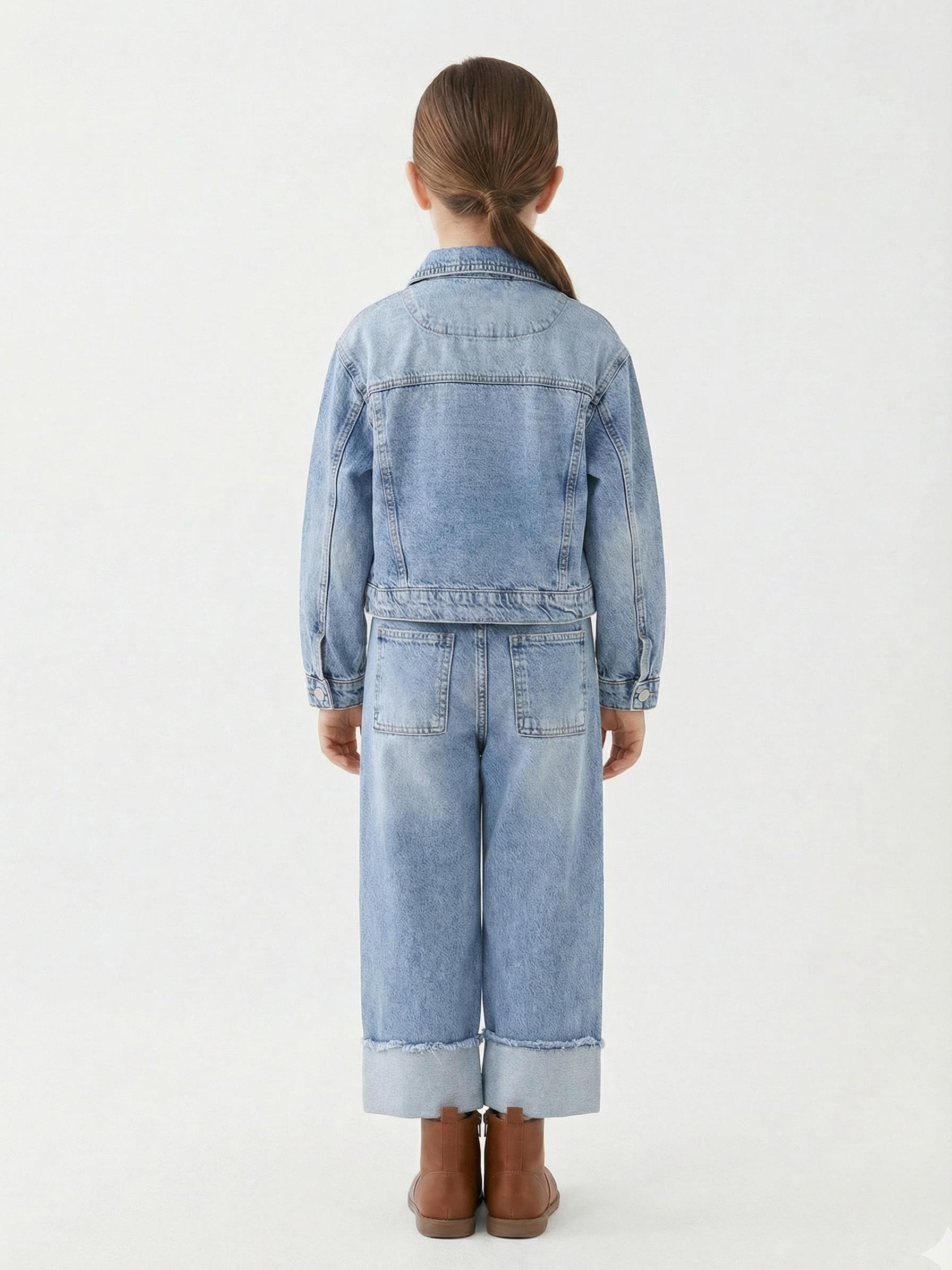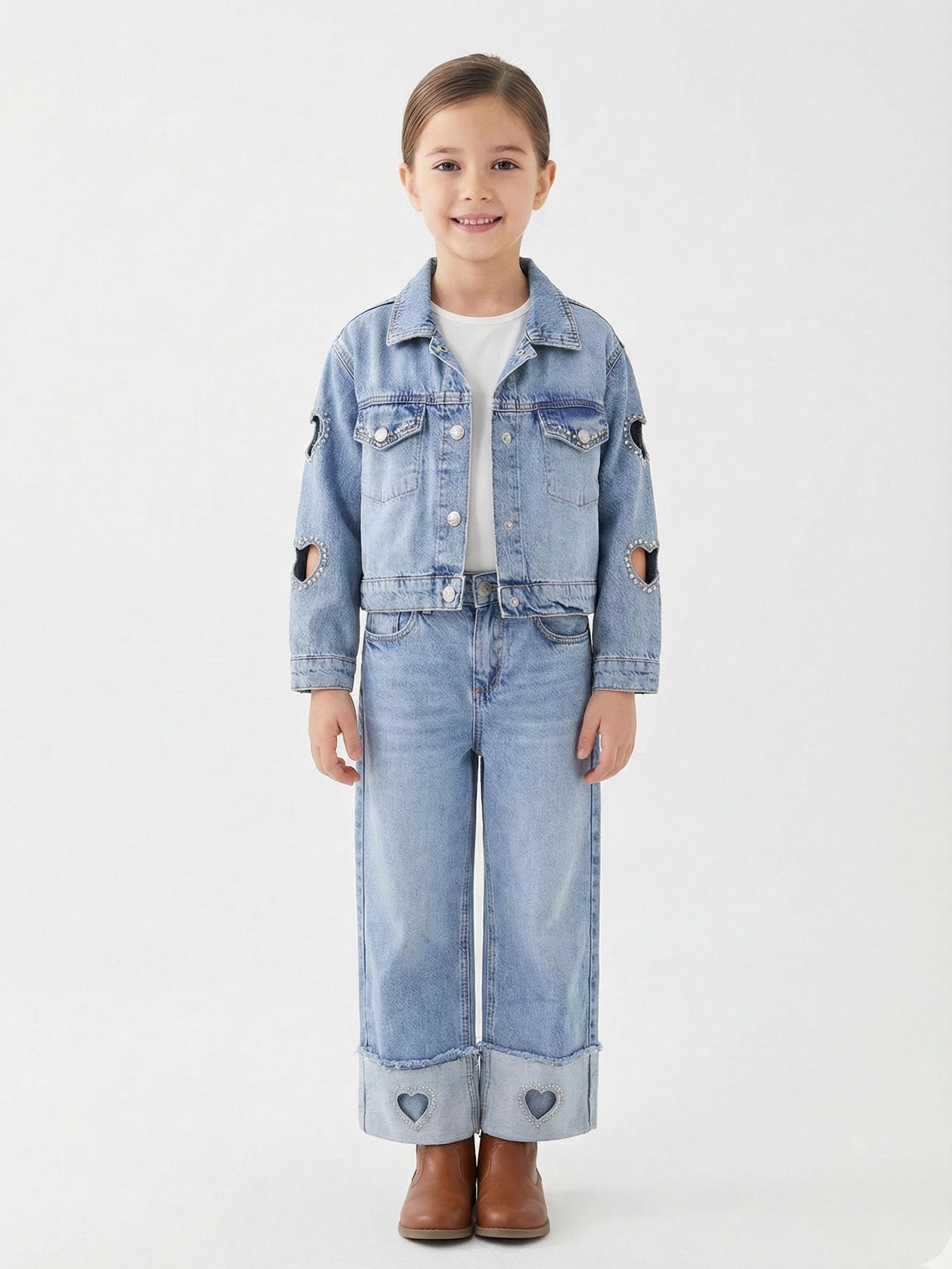Kız Çocuk 3'lü Jean Alt Üst Kombin Takmı 5-13 Yaş SET0474