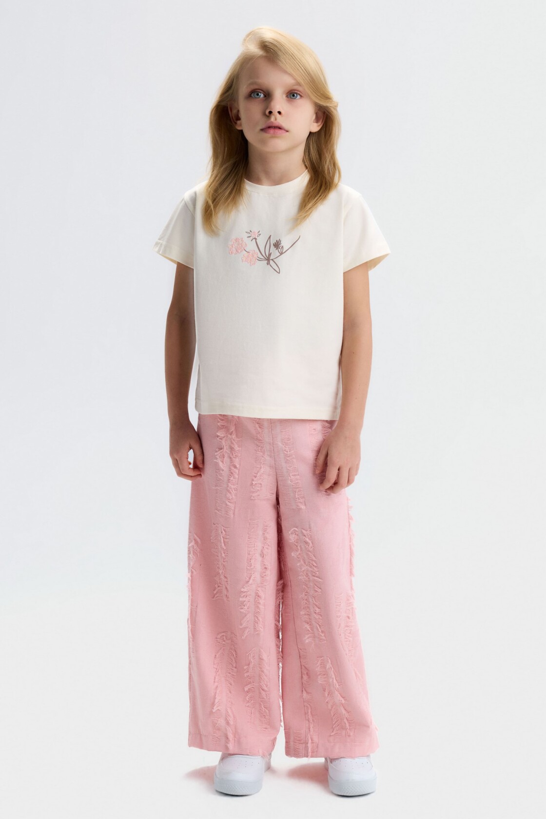 Kız Çocuk 3'lü Alt Üst Kombin Takmı 4-13 Yaş SET0479 Krem