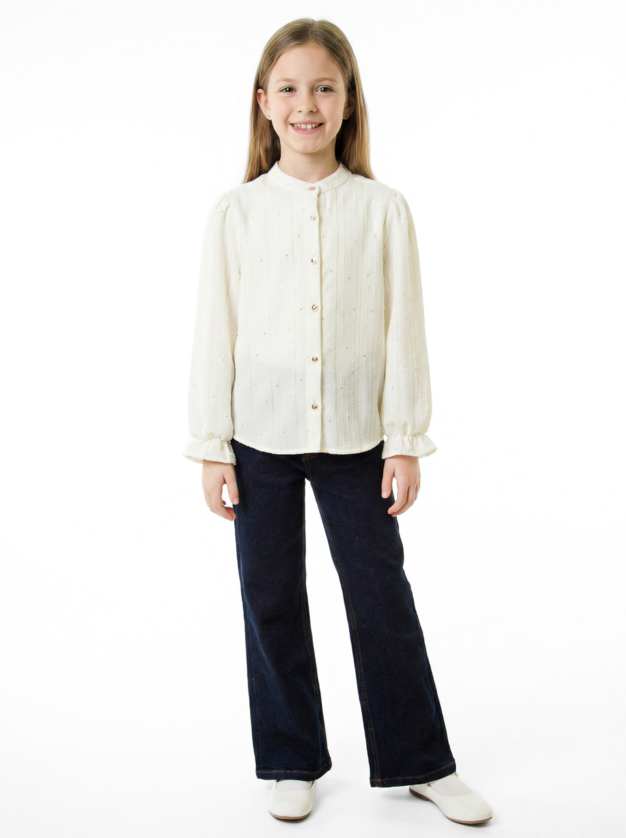 Kız Çocuk Folarlı 3'lu Alt Üst Takım 7-14 Yaş 3907-4907 Ekru