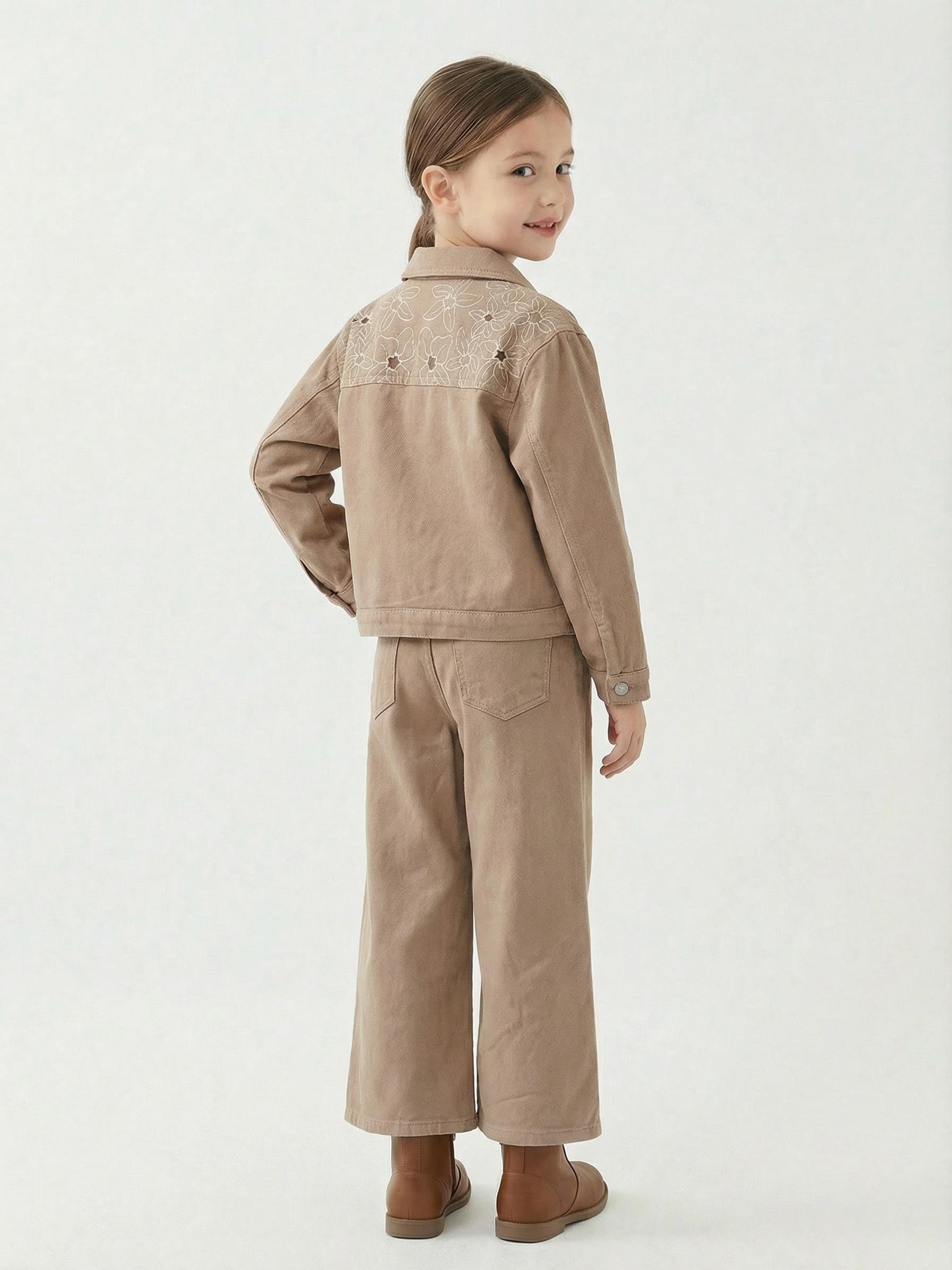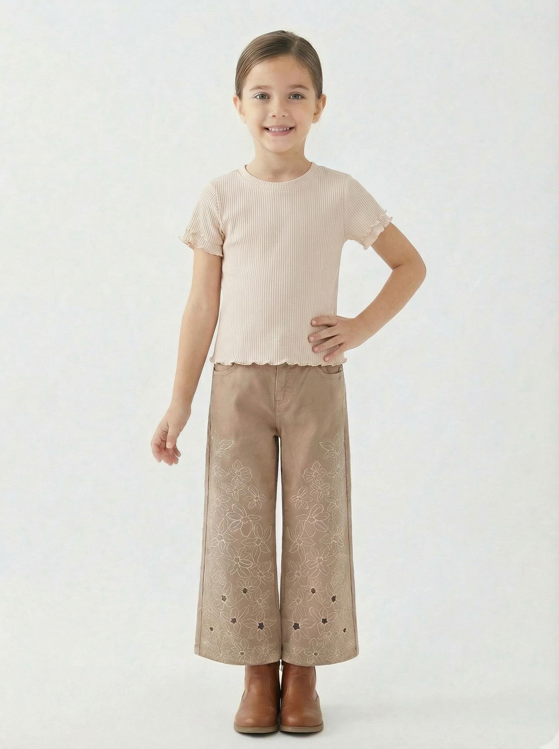 Kız Çocuk Alt Üst 3'lü Kombin Takmı SET0484 Kahverengi