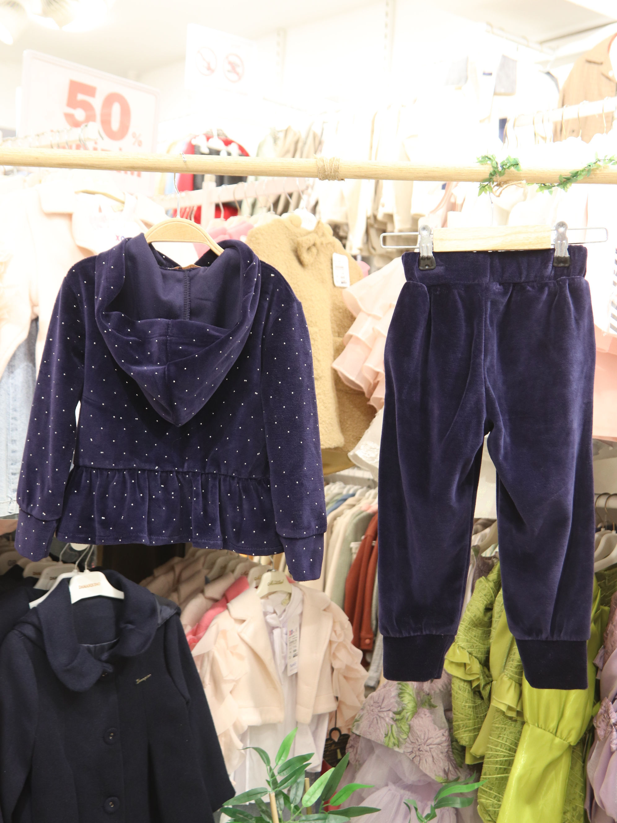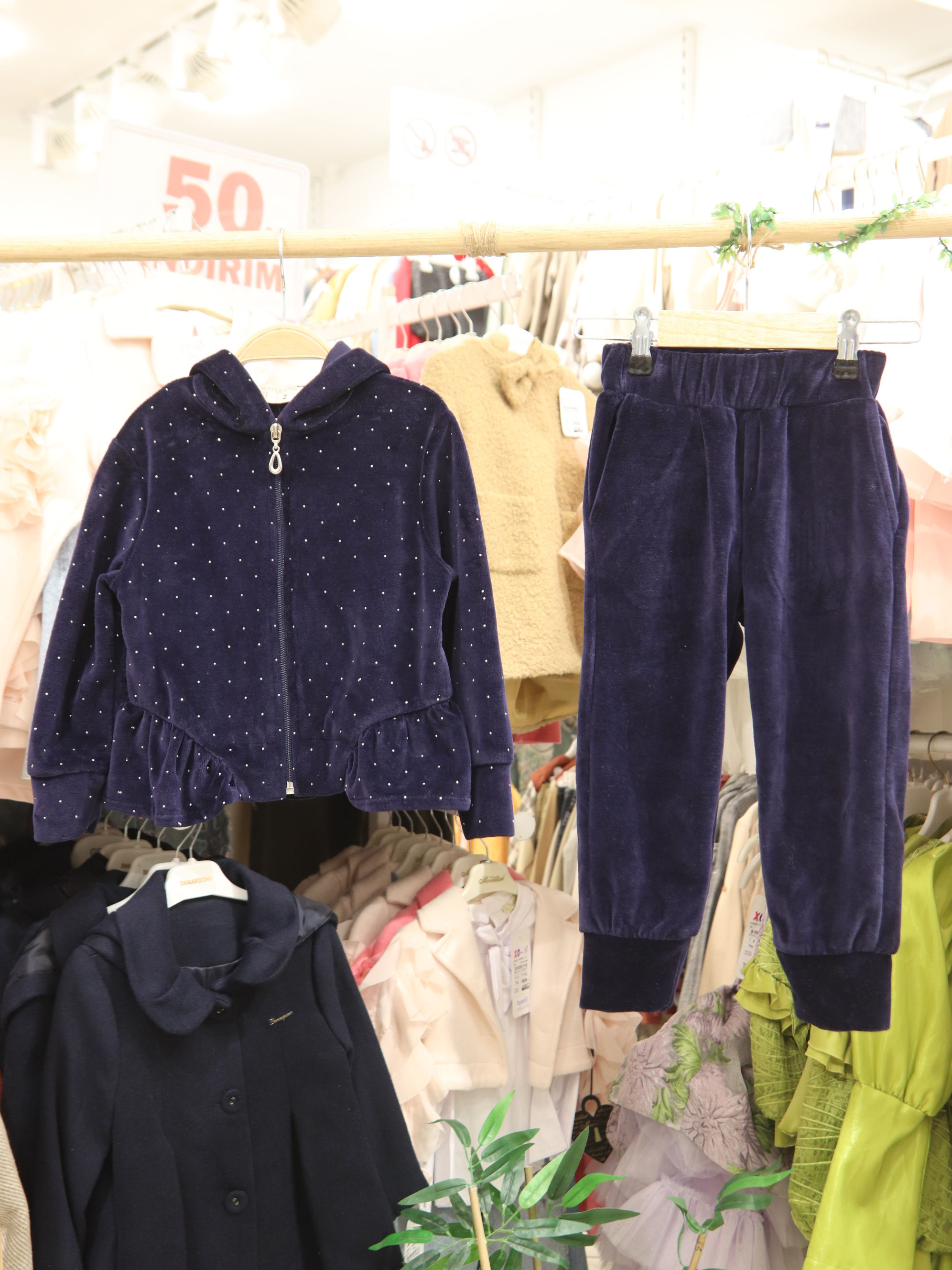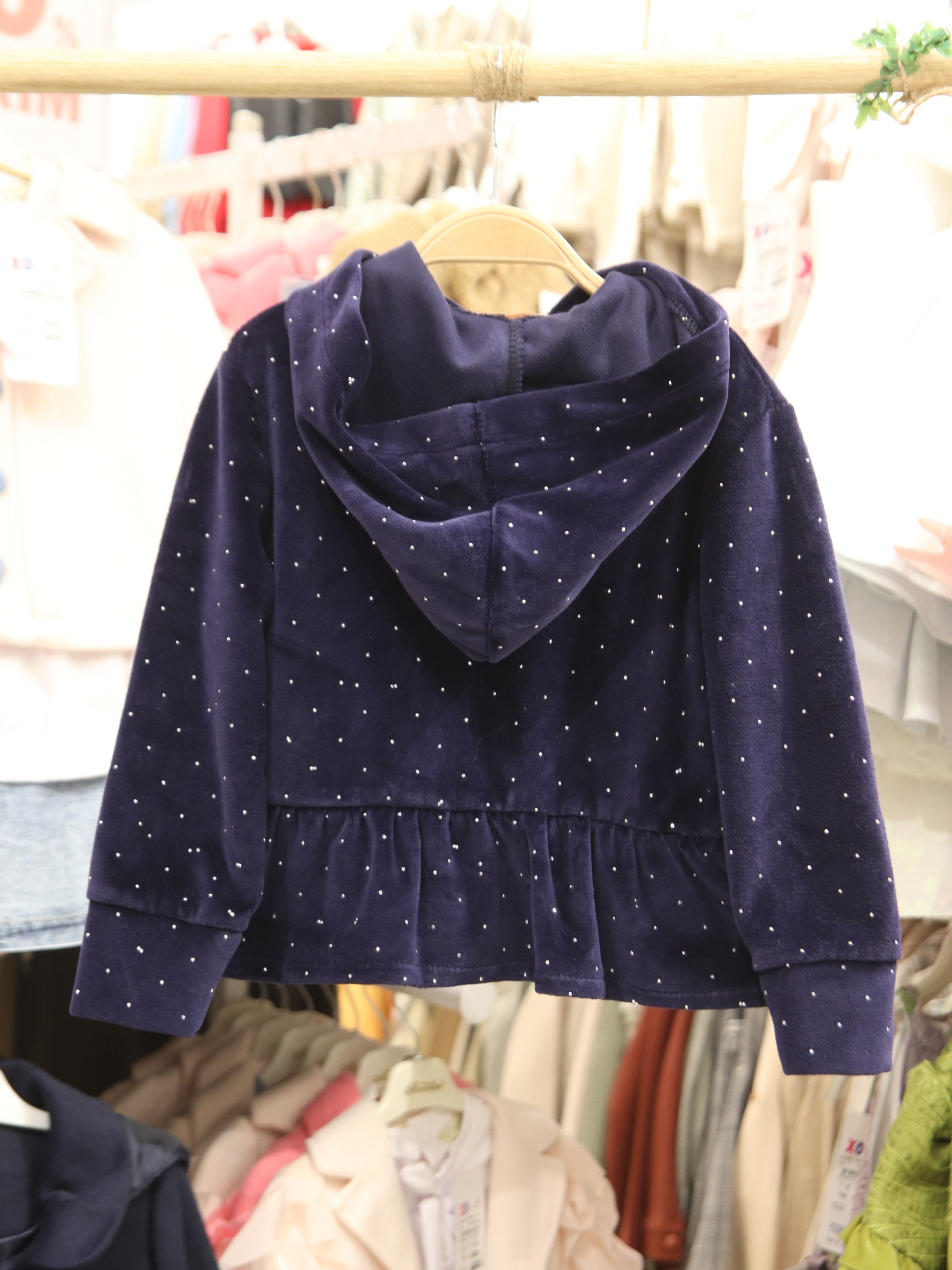 Bu kız çocuk alt üst takımı, yumuşak kadife kumaştan üretilmiş olup kış ayları için idealdir. Lacivert renkte olan takım, kapüşonlu ve fermuarlı üstü ile rahat kullanım sağlar. Ceket kısmında ince simli puantiye deseni ve bele doğru genişleyen fırfır detayı yer alır. Alt kısmı ise elastik paçalı ve konforlu kesimiyle hareket özgürlüğü sunar. Uzun kollu ve kapüşonlu tasarımı, soğuk havalarda ekstra koruma sağlar.