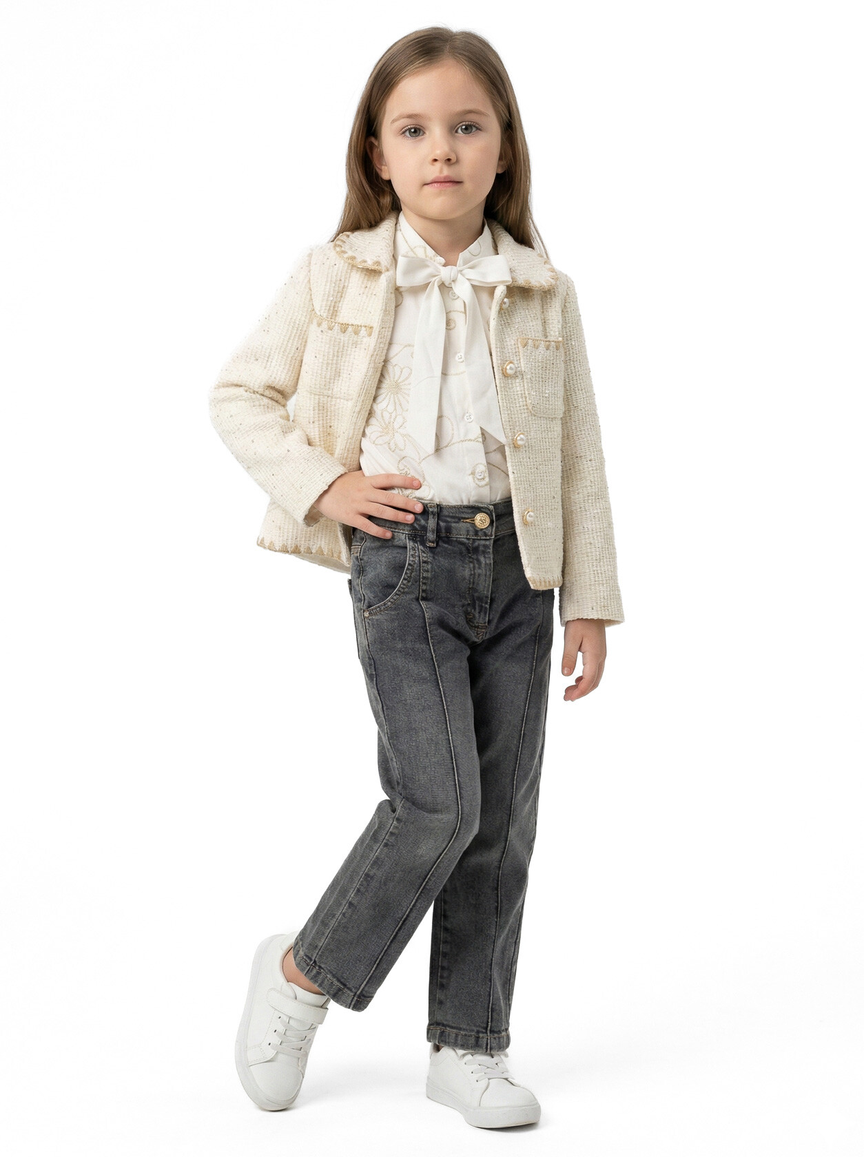 Kız çocuk alt üst takımı, 3-8 yaş arası çocuklar için şık ve rahat bir seçimdir. Uzun kollu üstü ve rahat kesim pantolonu ile hem günlük hem de özel günlerde giyilebilir. Ekru tonlarıyla zarif bir görünüm sunar. Şimdi keşfedin!