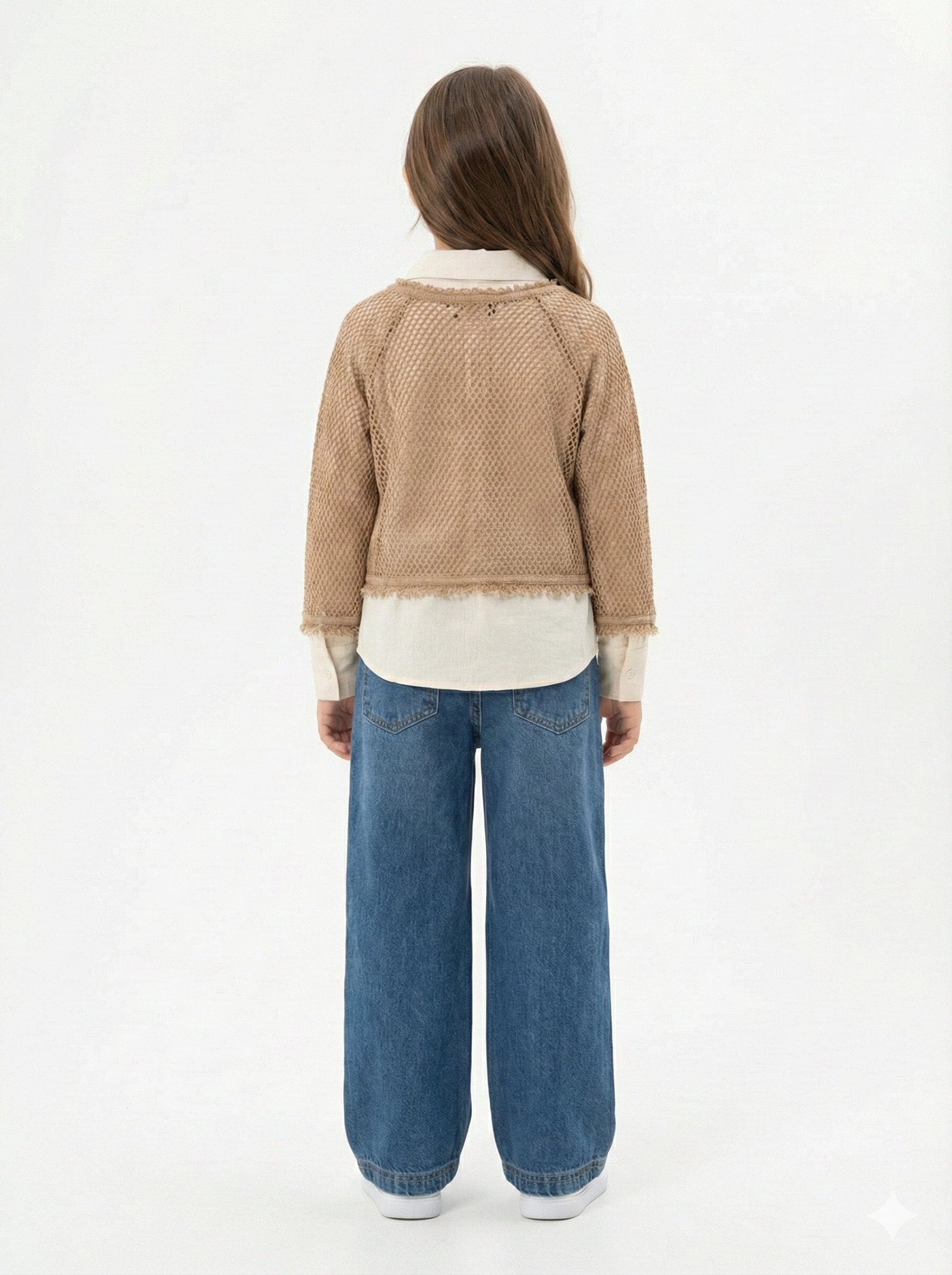 Pelerin Detaylı Kız Çocuk 3'lü Alt Üst Takım 4-10 Yaş 4406 Ekru - Kahverengi