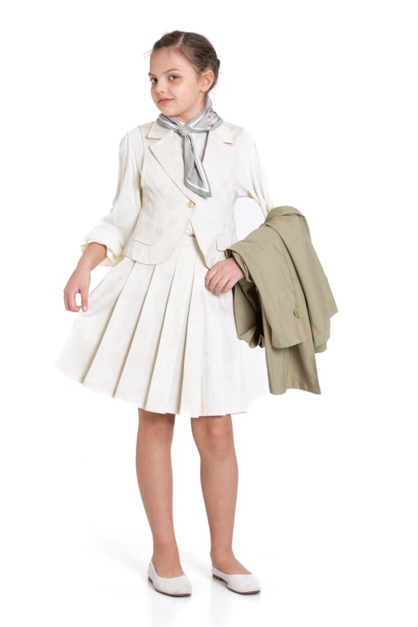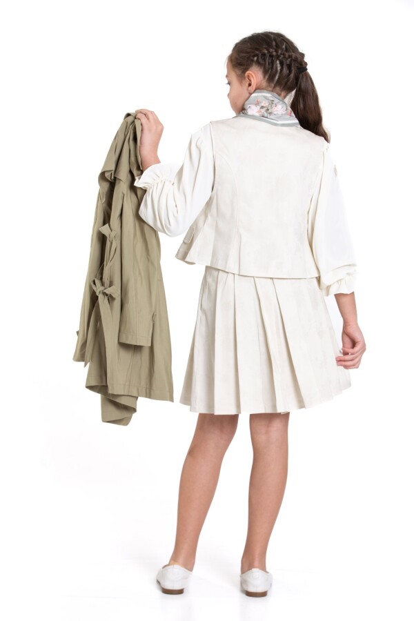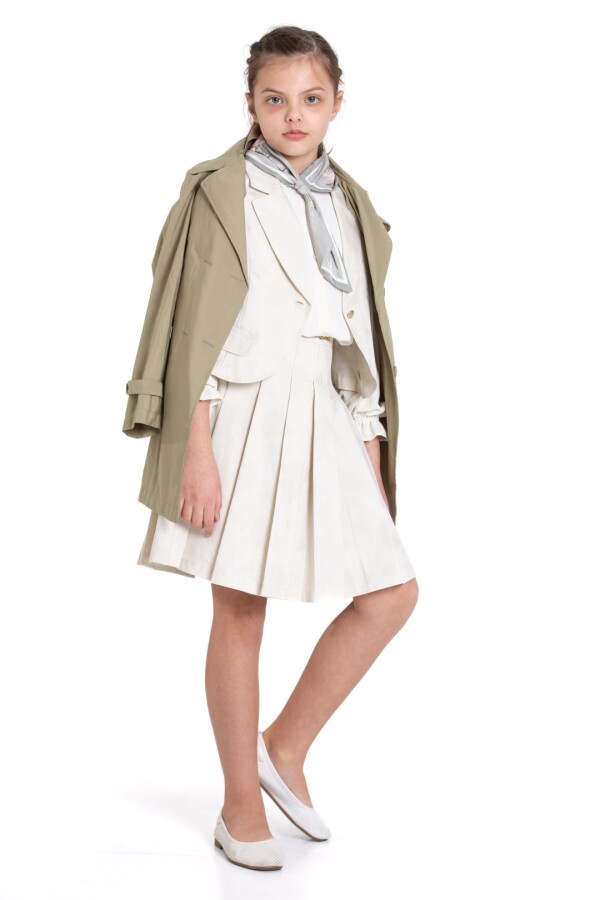 Bu şık kız çocuk etek takımı, her genç modacının gardırobuna mükemmel bir ek olacaktır. Haki rengiyle zarif bir görünüm sunan bu parça, şıklığı ve rahatlığı bir arada arayanlar için idealdir.