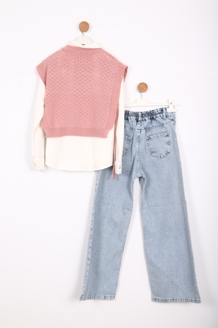 Kız Çocuk 3'lü Alt Üst Takım 4-7 Yaş 52127 Pudra