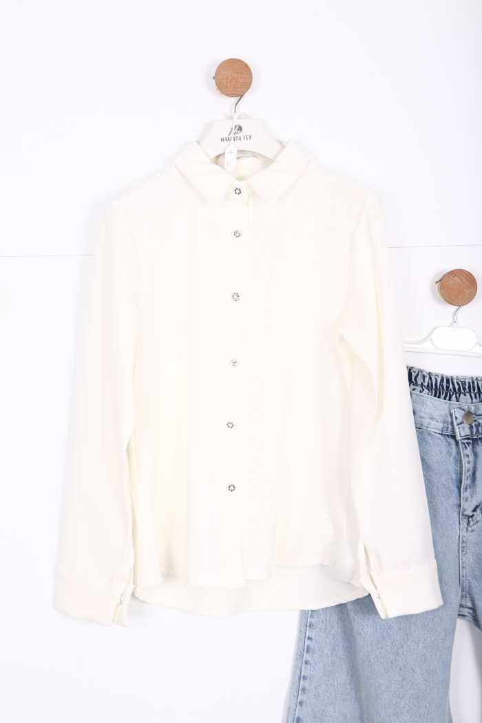 Kız Çocuk 2'li (Ceket + Pantolon) Alt Üst Takım 4-13 Yaş 2676 Krem