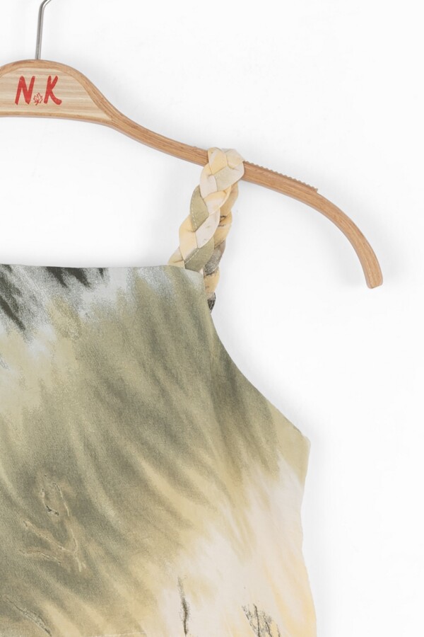 Bu şık ve rahat askılı bluz, kız çocukları için mükemmel bir seçimdir. Haki tonlarında, ince ve hafif kumaşı ile yaz günlerinde serin kalmanızı sağlar. Özel dokusundaki ayrıntılı desenler, çocuğunuzun tarzını yansıtır.