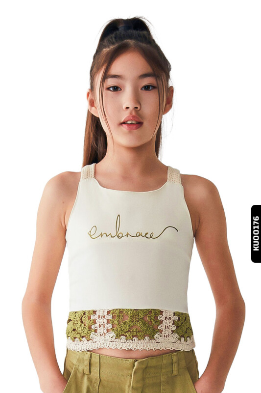 Kız Çocuk Askılı Bluz 10-16 Yaş 38822 Ekru