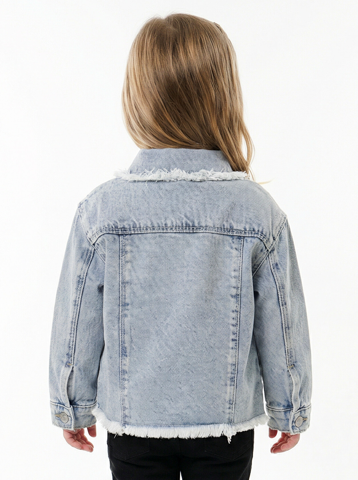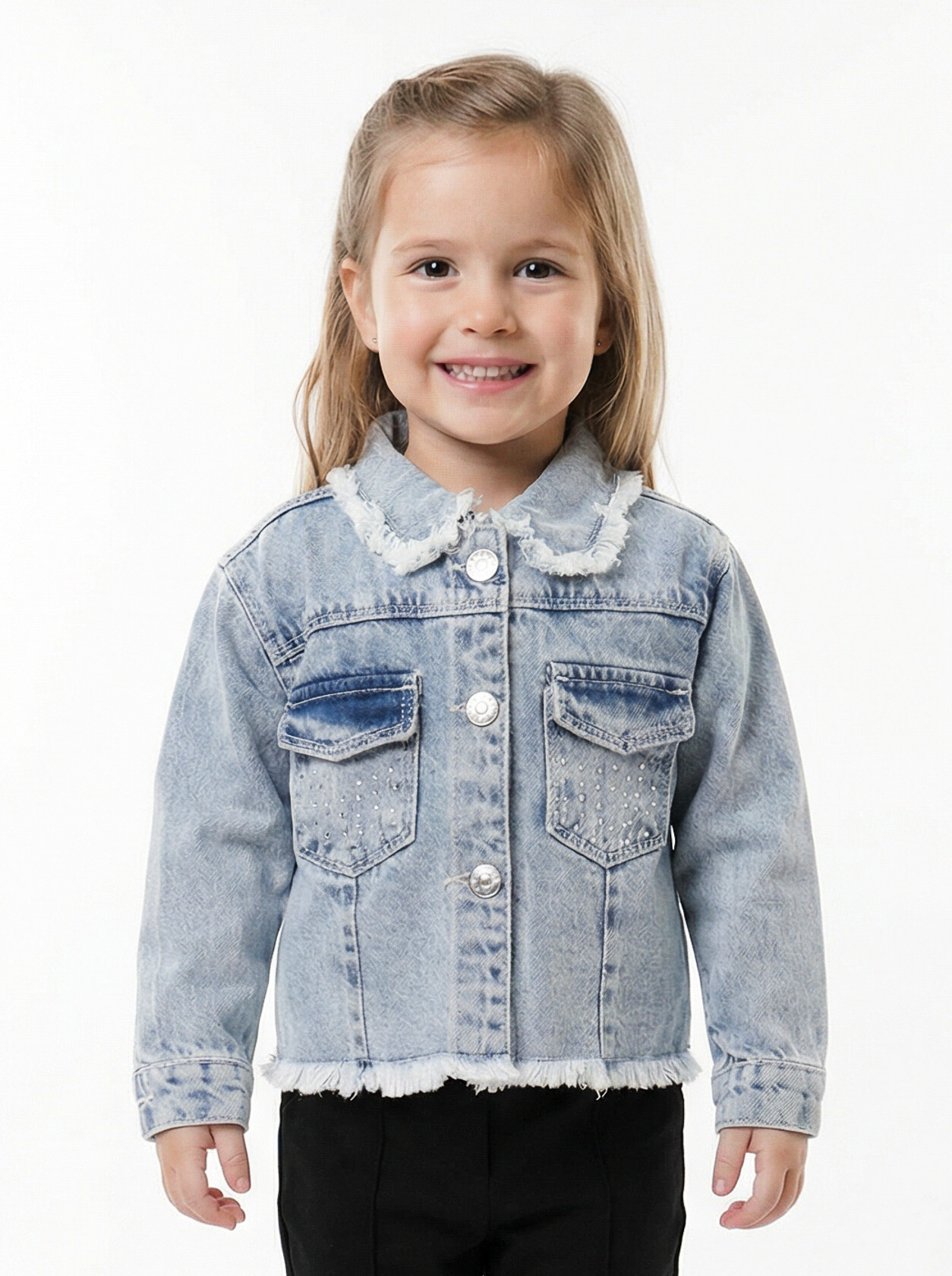 Bu kız çocuk kot ceket, bahar mevsimi için mükemmel bir seçimdir. Mavi renkte olan ceket, klasik denim tarzında tasarlanmıştır ve spor bir görünüm sunar.
