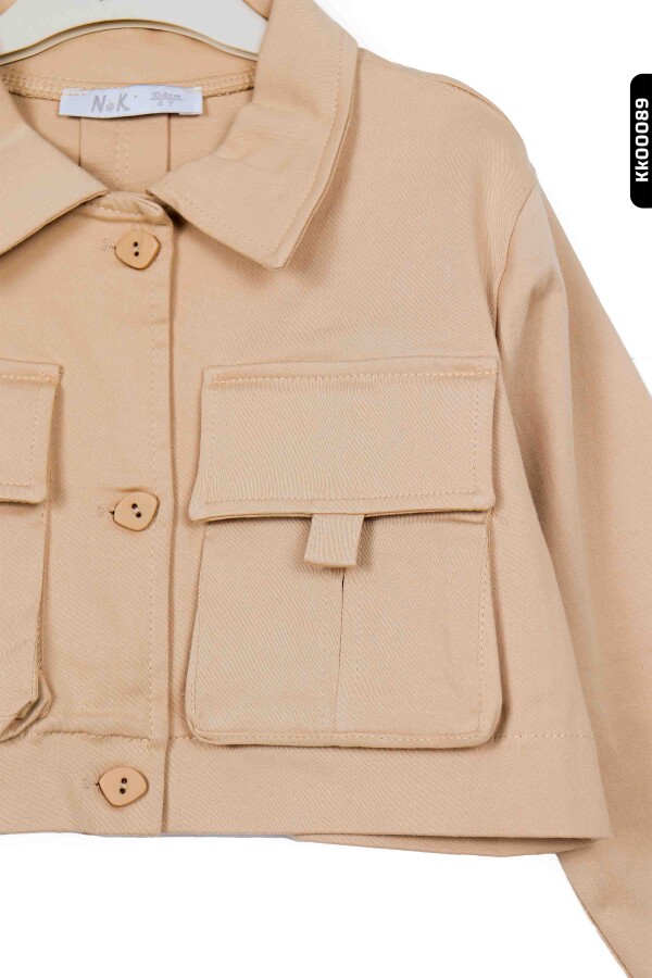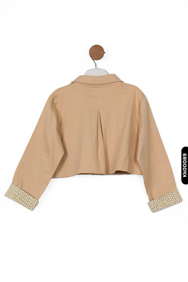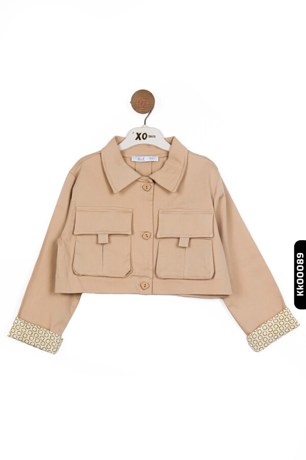 هذه السترة للبنات تتميز بتصميم خفيف وأنيق مثالي لموسم الصيف. لا تحتوي على غطاء رأس وتغلق بأزرار، مع طول قصير يمنح مظهرًا عصريًا. الأكمام الطويلة مزينة بأساور من قماش منقوش يضيف لمسة فريدة للسترة. تحتوي على جيوب كبيرة في الأمام توفر وظيفة وجمالًا في الوقت نفسه. لونها البيج يجعل من السهل تنسيقها مع ملابس مختلفة.