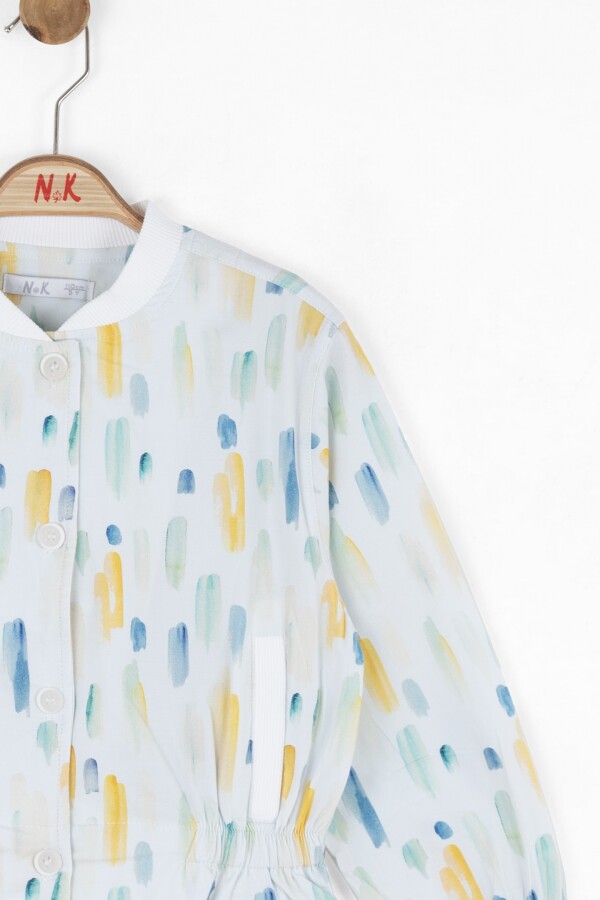Bu şık kız çocuk ceket, enerjik ve neşeli bir görünüm sunuyor. Renkli fırça darbeleriyle süslenmiş desenleri, her yaştan çocuğun ilgisini çekmek için tasarlandı. Fermuarlı ve cepli yapısı, hem rahatlık hem de işlevsellik sağlıyor. Kısa kollu tasarımı, yaz aylarında serin tutarken, lastik detayları ile hem şık hem de rahat bir görünüm sunar.