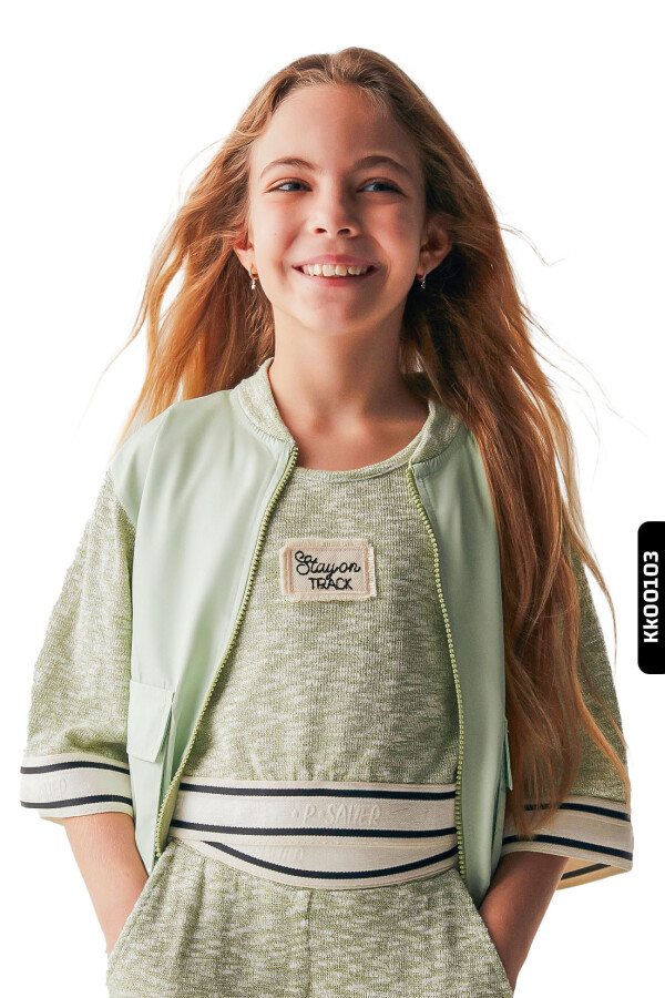 Kız Çocuk Ceket 4-8 Yaş 31542 Ekru - Yeşil