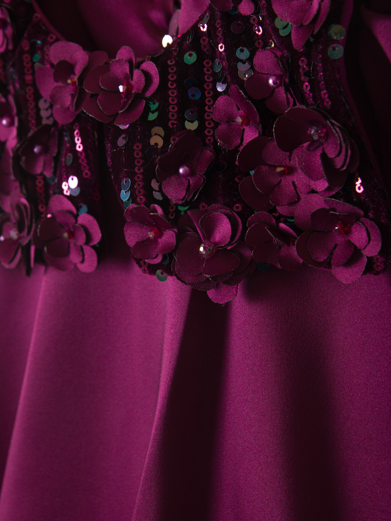 - Omuzlarda payet ve çiçek süslemeleri