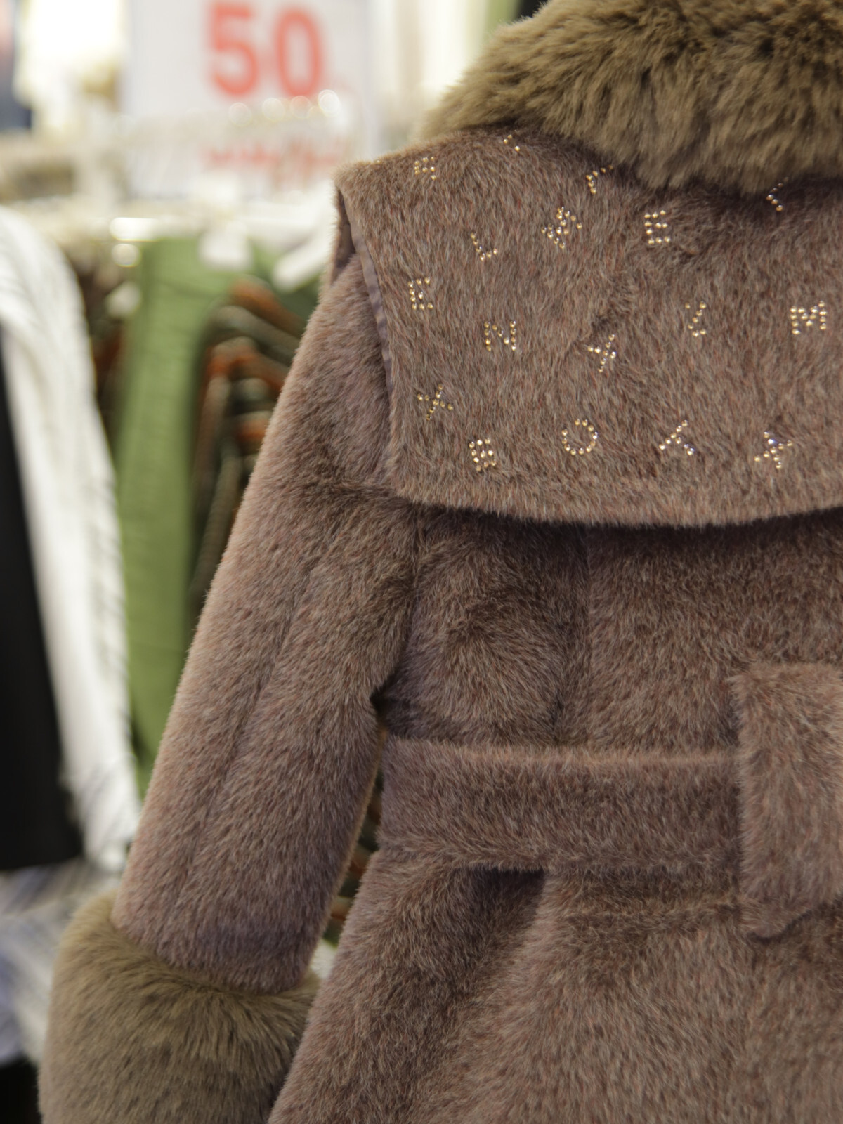 • Haki renkli, peluş kumaştan yapılmış uzun kollu kaban