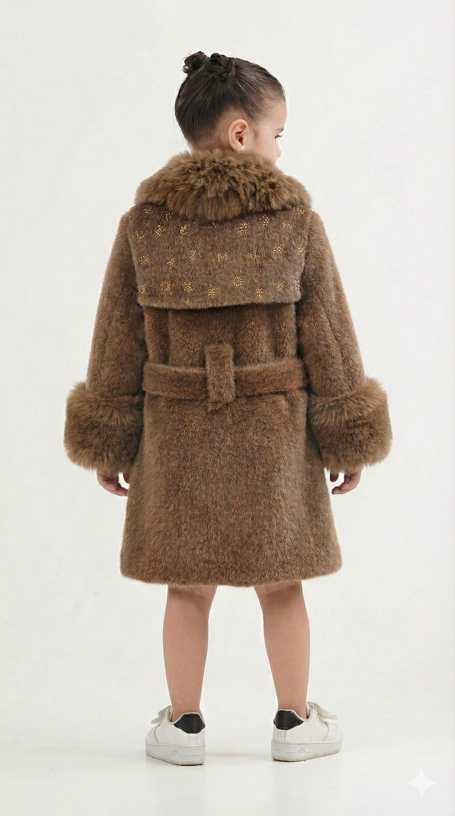 Kız Çocuk Elbise ve Kaban Takmı 2-6 Yaş 400 Kahve