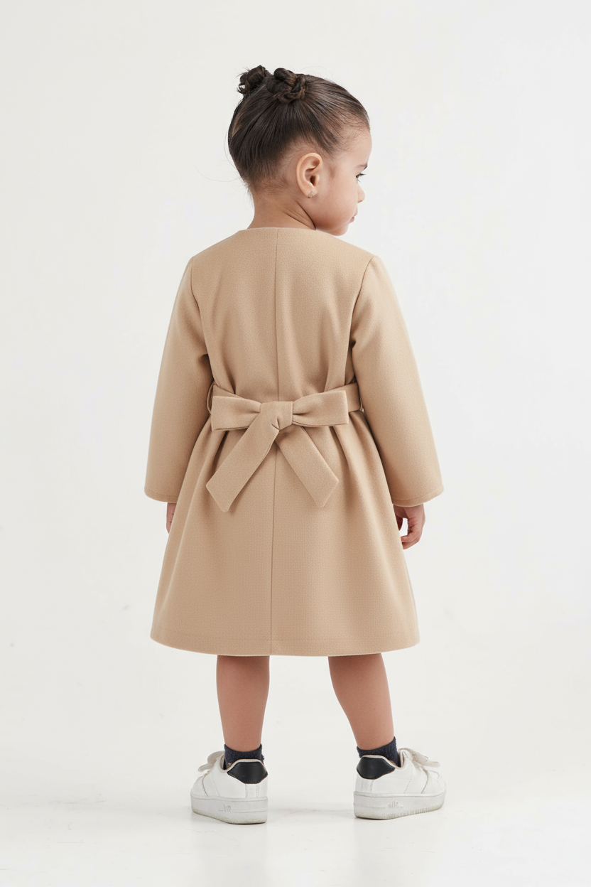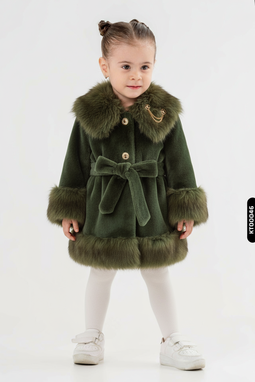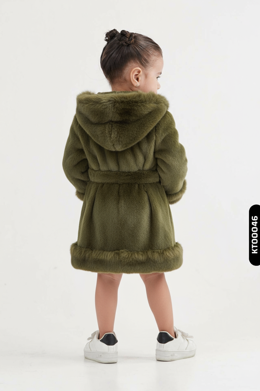 Bu kış koleksiyonunun şık ve sıcak parçası olan kız çocuk kabanı, yumuşak ve peluş görünümlü kumaşıyla öne çıkar. Kapüşonlu tasarımı sayesinde ekstra koruma sağlar ve soğuk havalarda rahatlık sunar. Uzun kollu, bilek ve etek kısmında peluş detaylar bulunan kaban, düğmeli kapanışa sahiptir ve belden bağlanan peluş kuşak ile şıklığını tamamlar. Bu kaban, özel günlerde ve günlük kullanımlarda zarif bir tercih olacaktır.