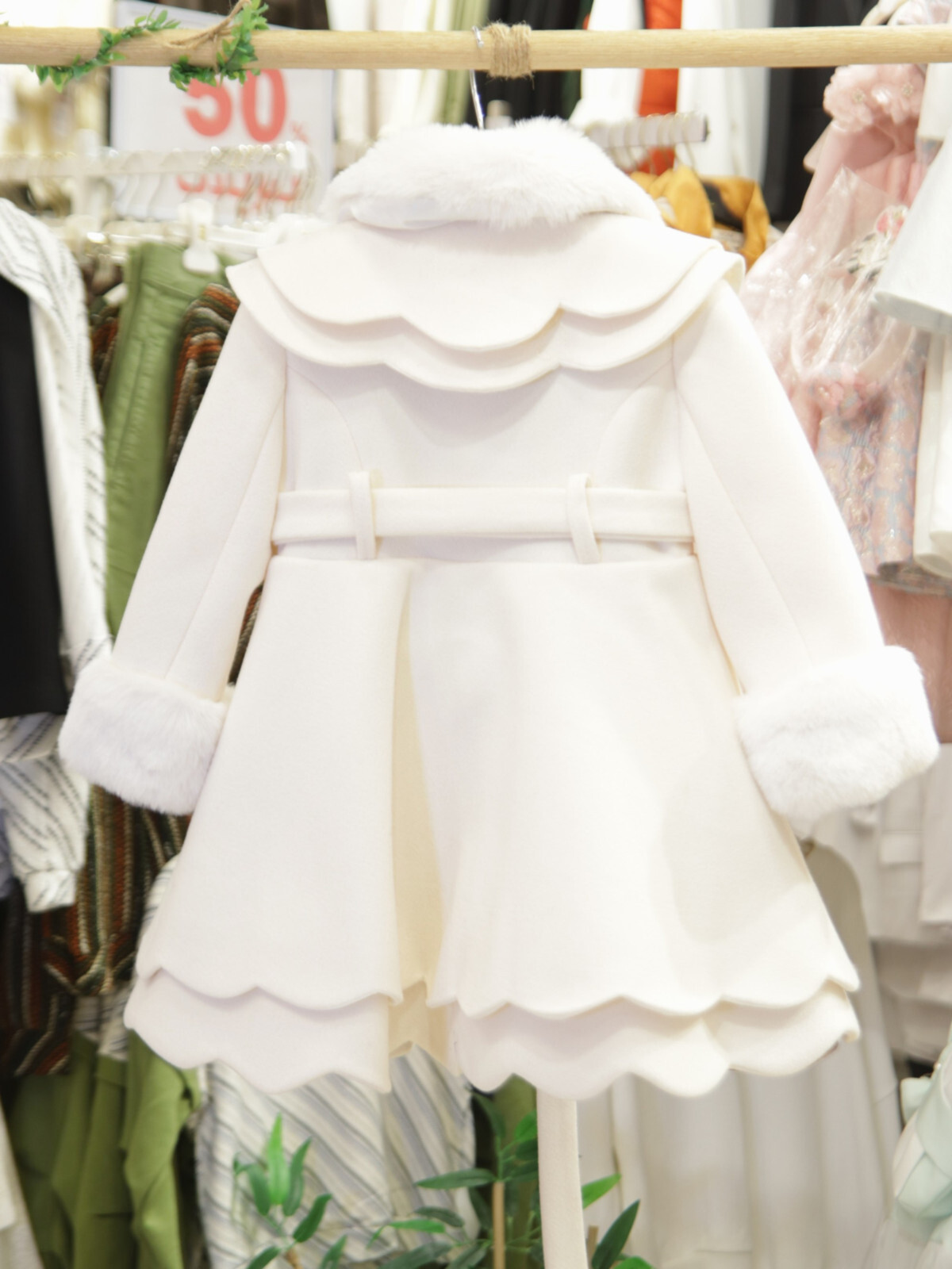 يتميز هذا المعطف الشتوي للفتيات بتصميم أنيق وجميل. المعطف بلون الكريمي الفاتح يحتوي على أكمام طويلة وحزام عند الخصر لتشكيل مريح. الطوق وأساور الأكمام مزينة بالفرو الناعم الصناعي، مما يوفر الدفء ولمسة فاخرة. يغلق المعطف بزرار أمامي ويتميز بحافة مطوية بطبقات متموجة تضفي لمسة مميزة على التصميم. مثالي للمناسبات الخاصة أو الاستخدام اليومي، ومناسب للفتيات من عمر 9 إلى 14 سنة.