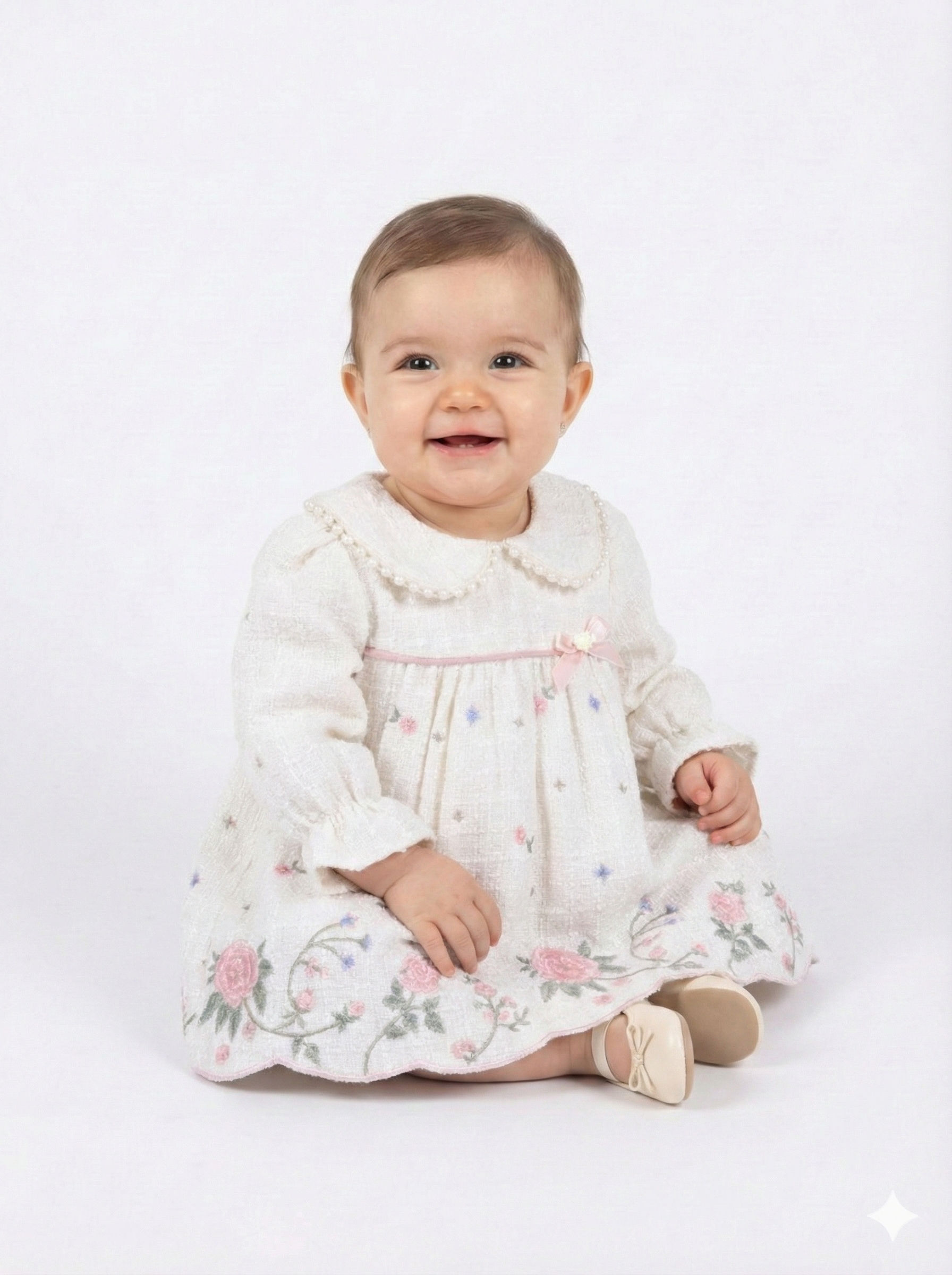 Kız Çocuk Elbise 3-12 Ay 4712 Ekru