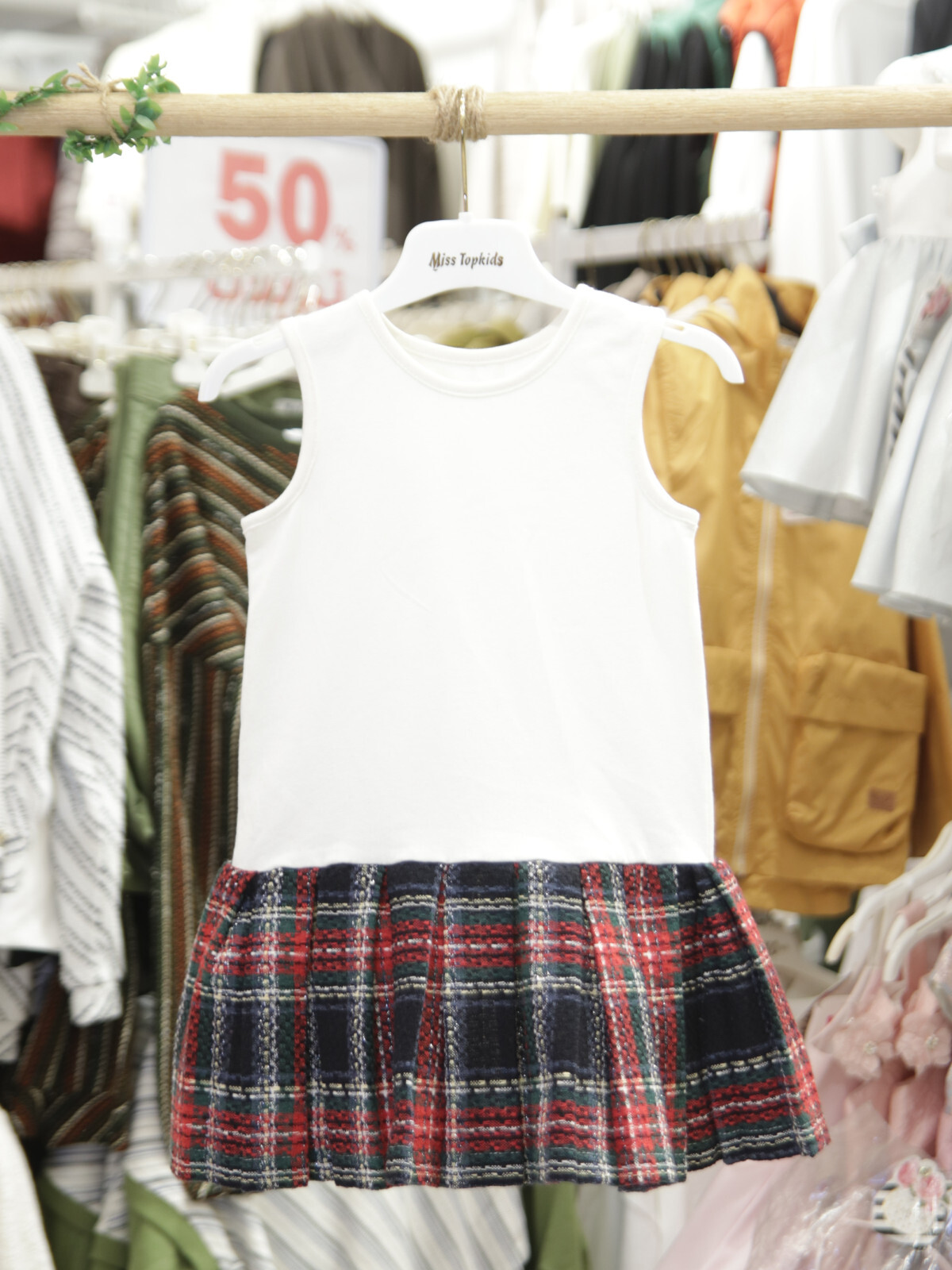 - Diz üstü uzunlukta, klasik ekose desenli pileli etek